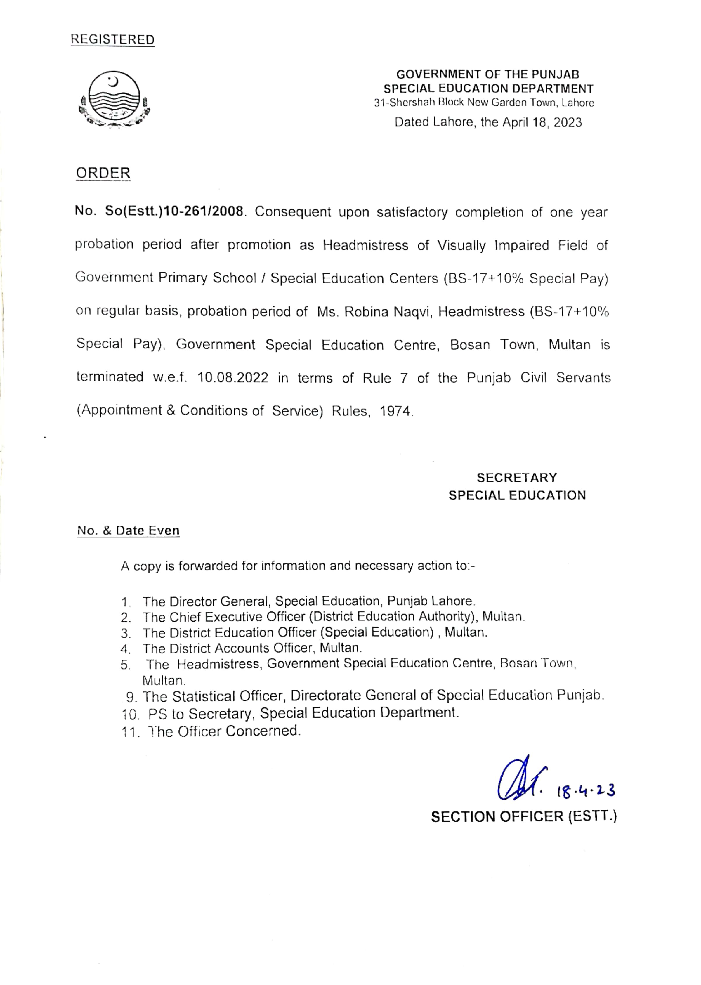 Category Promotion Orders Date Wednesday, April 19, 2023 - 12:00 Order No S0(ESTT.)10-261/2008 File CamScanner 04-19-2023 11.22_page3_image3.jpg469.75 KB Employee Name Robina Naqvi Prominent Notifications
