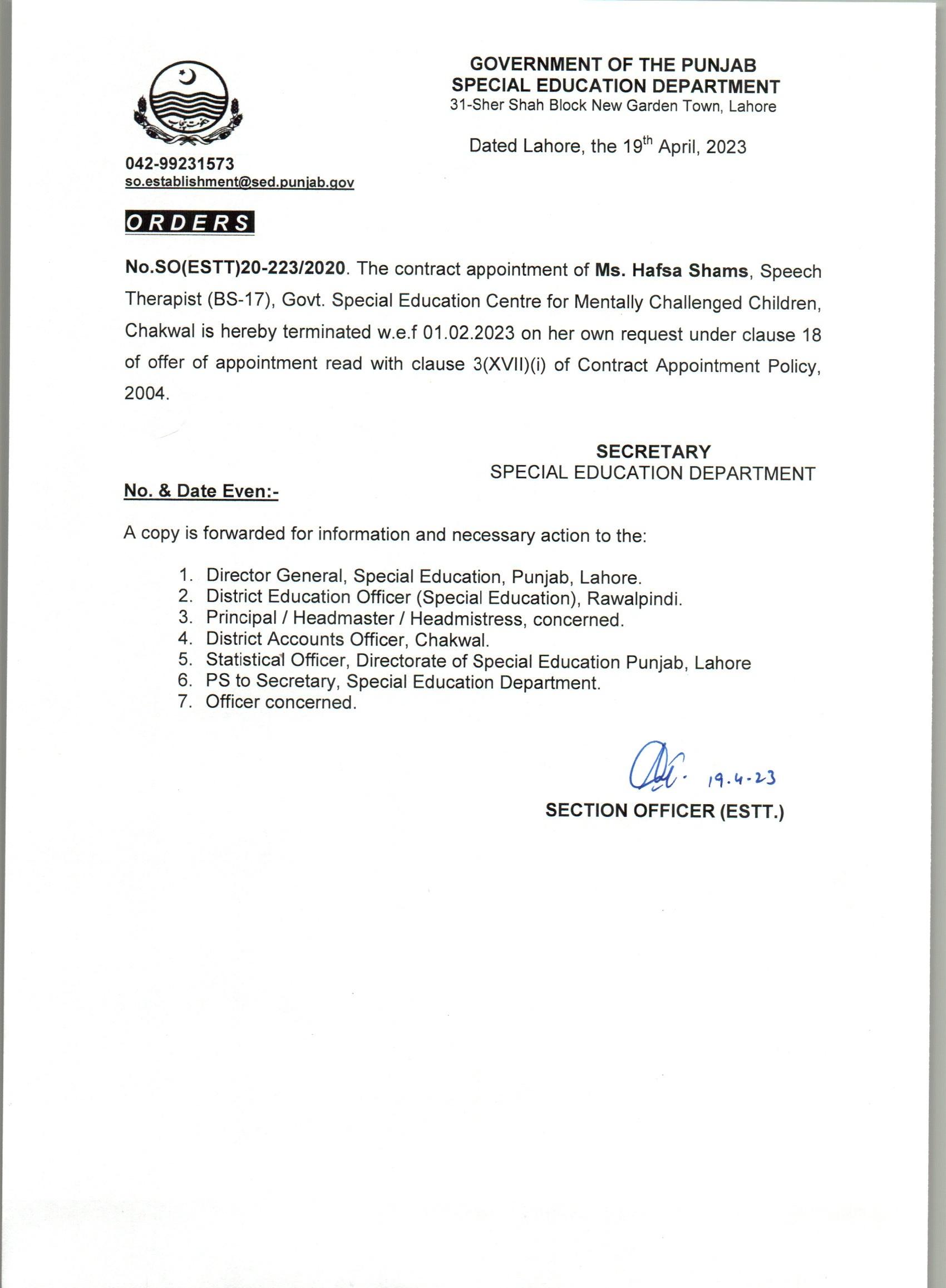 Resignations Relieving Orders