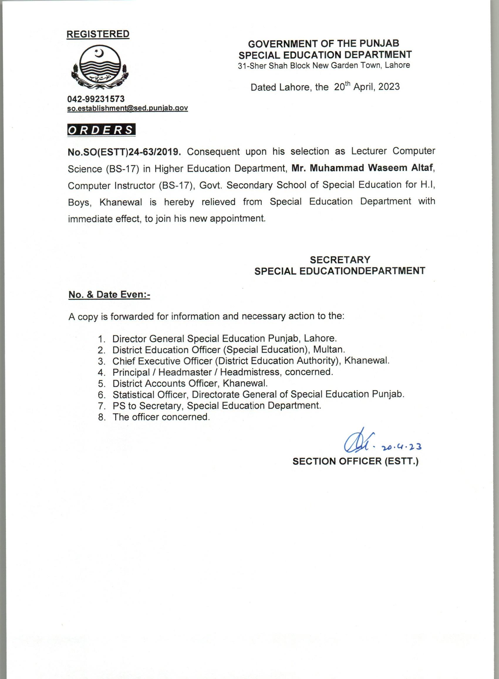 Resignations Relieving Orders