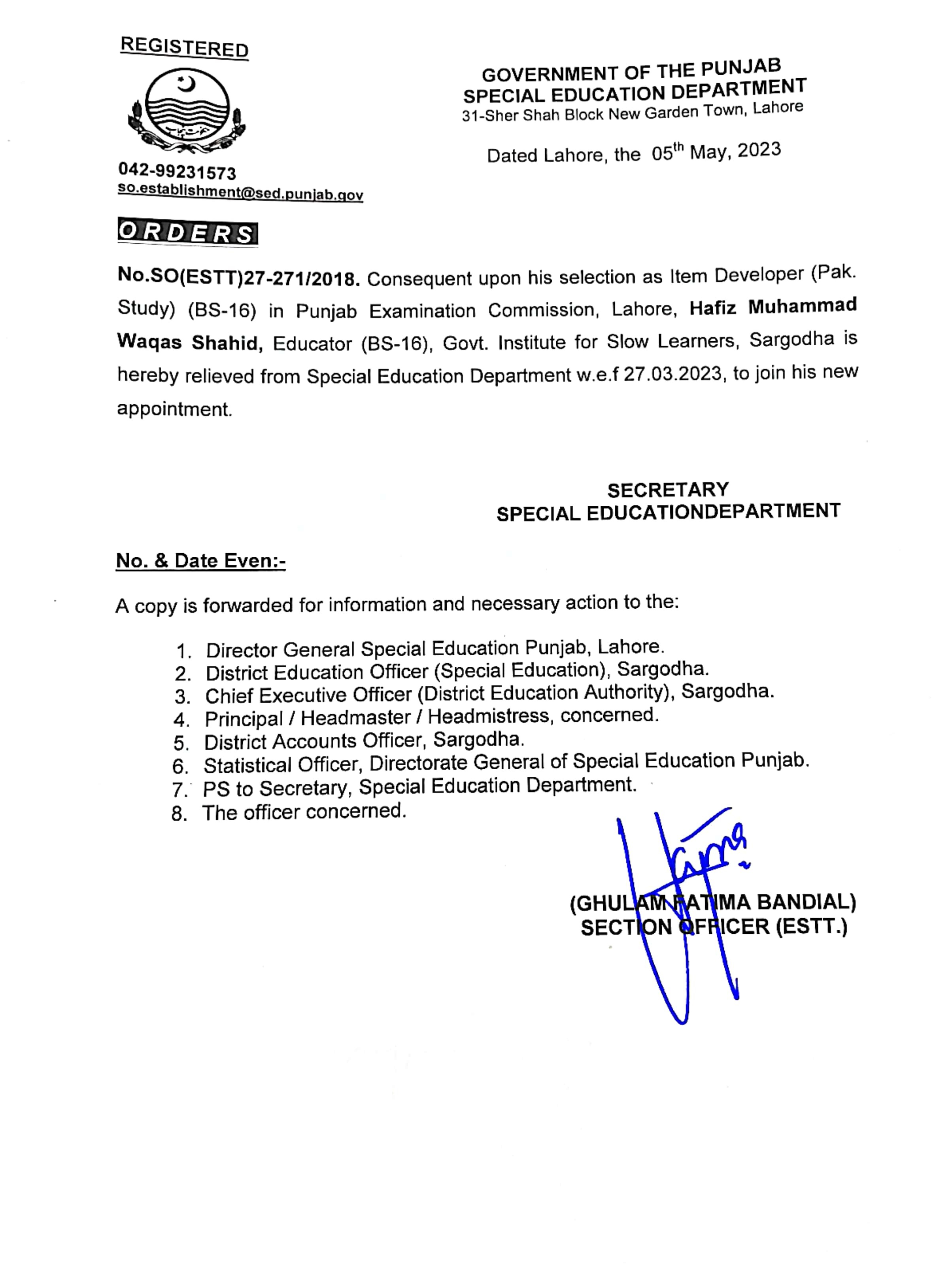 Resignations Relieving Orders