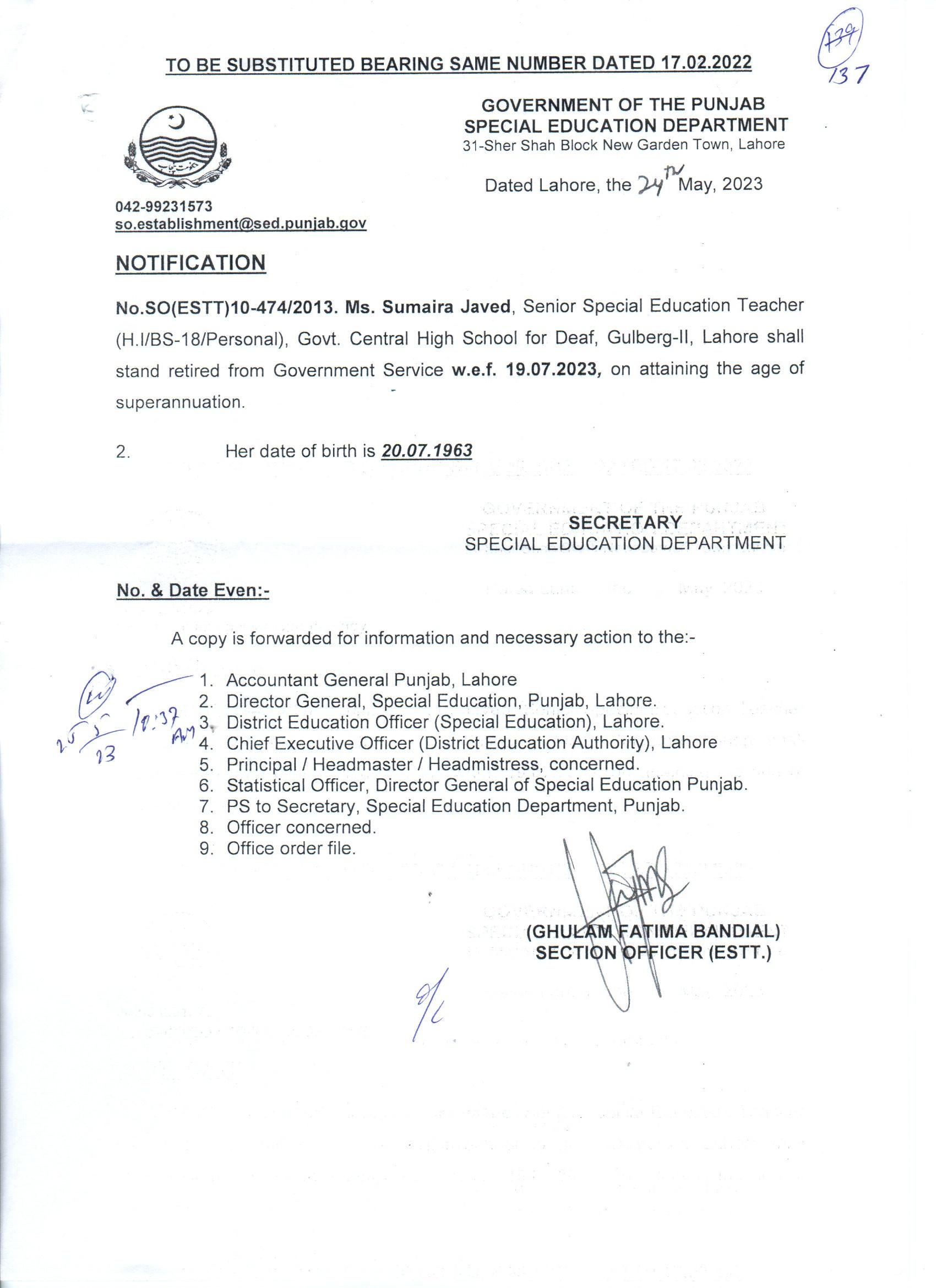 Retirement / Obituary Notifications