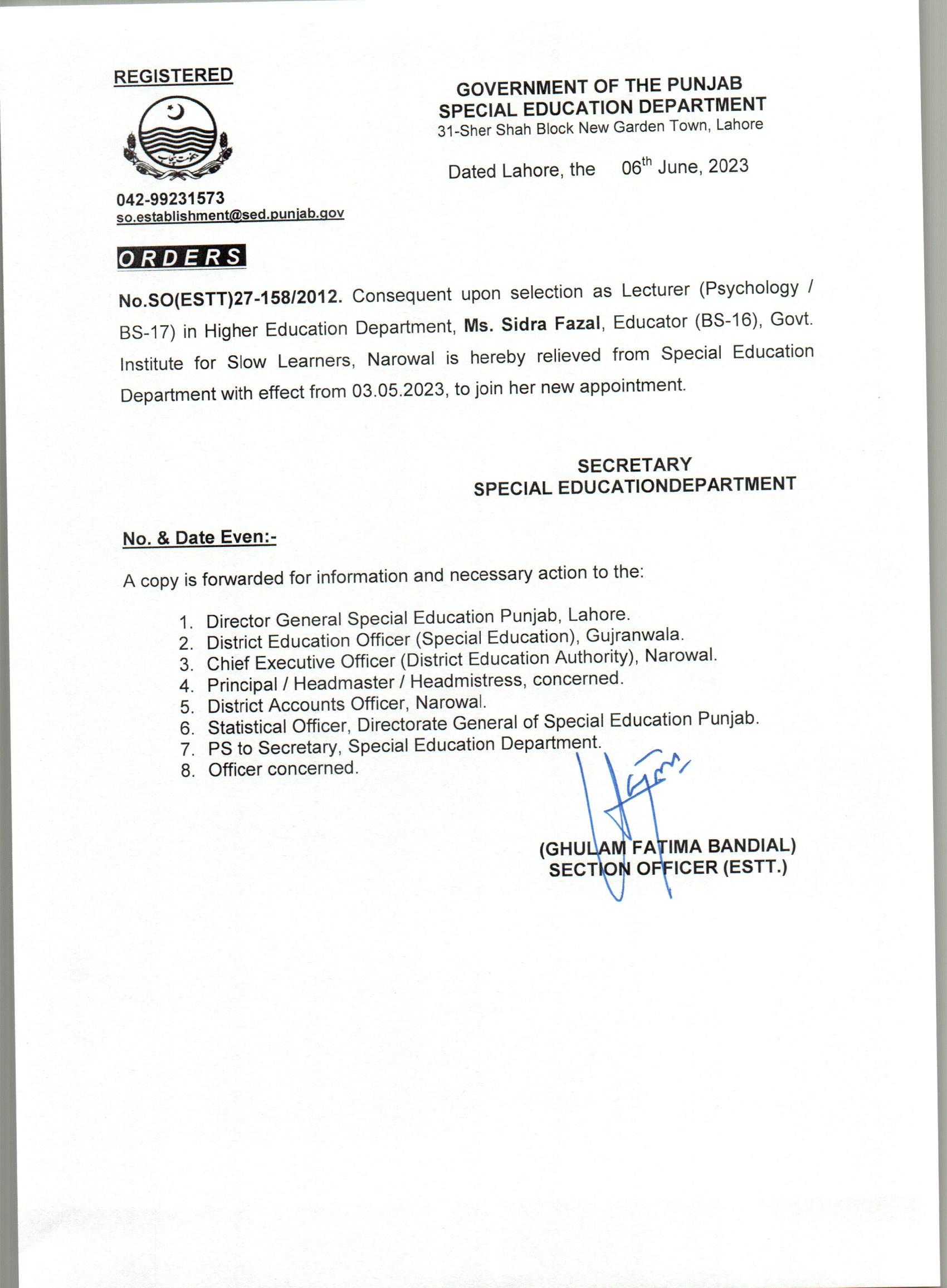 Resignations Relieving Orders