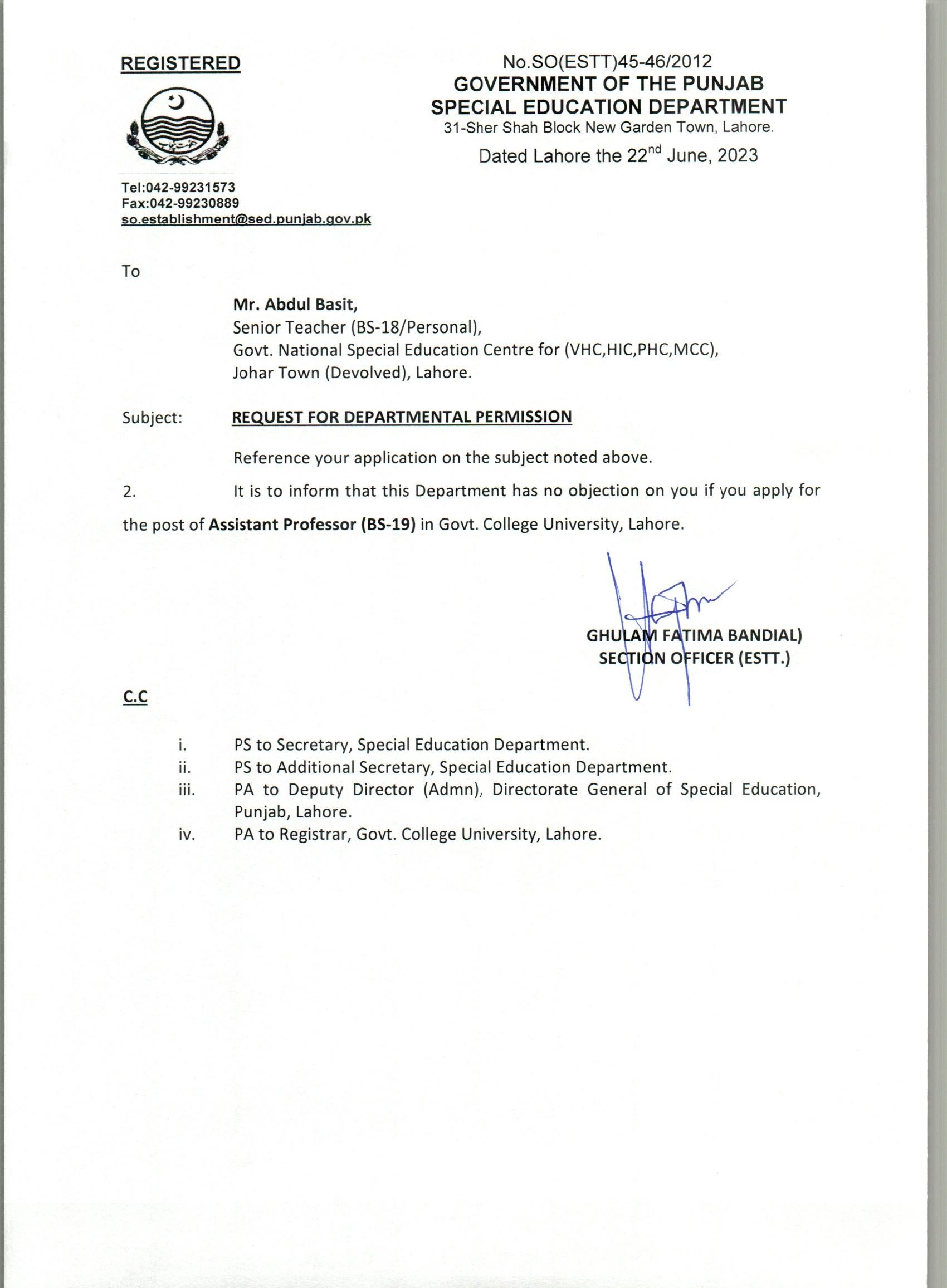 Departmental Permissions