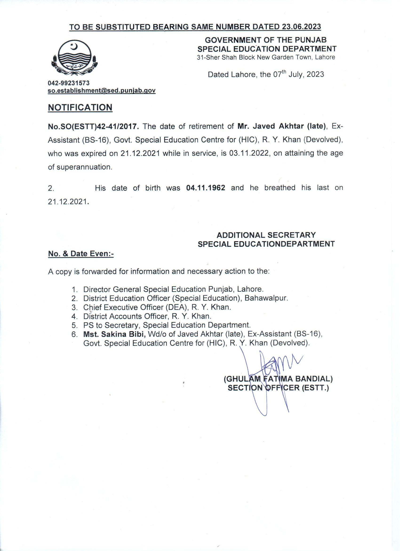 Retirement / Obituary Notifications