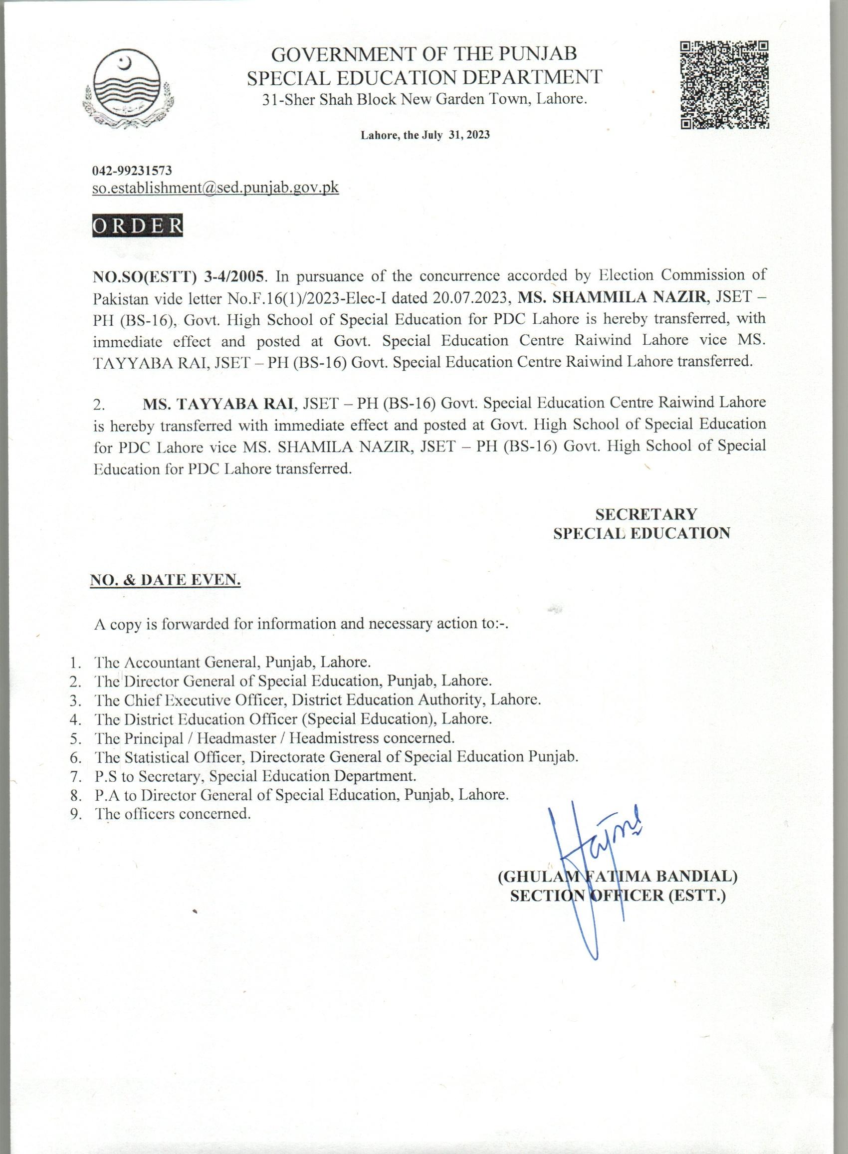Transfer / Posting Orders