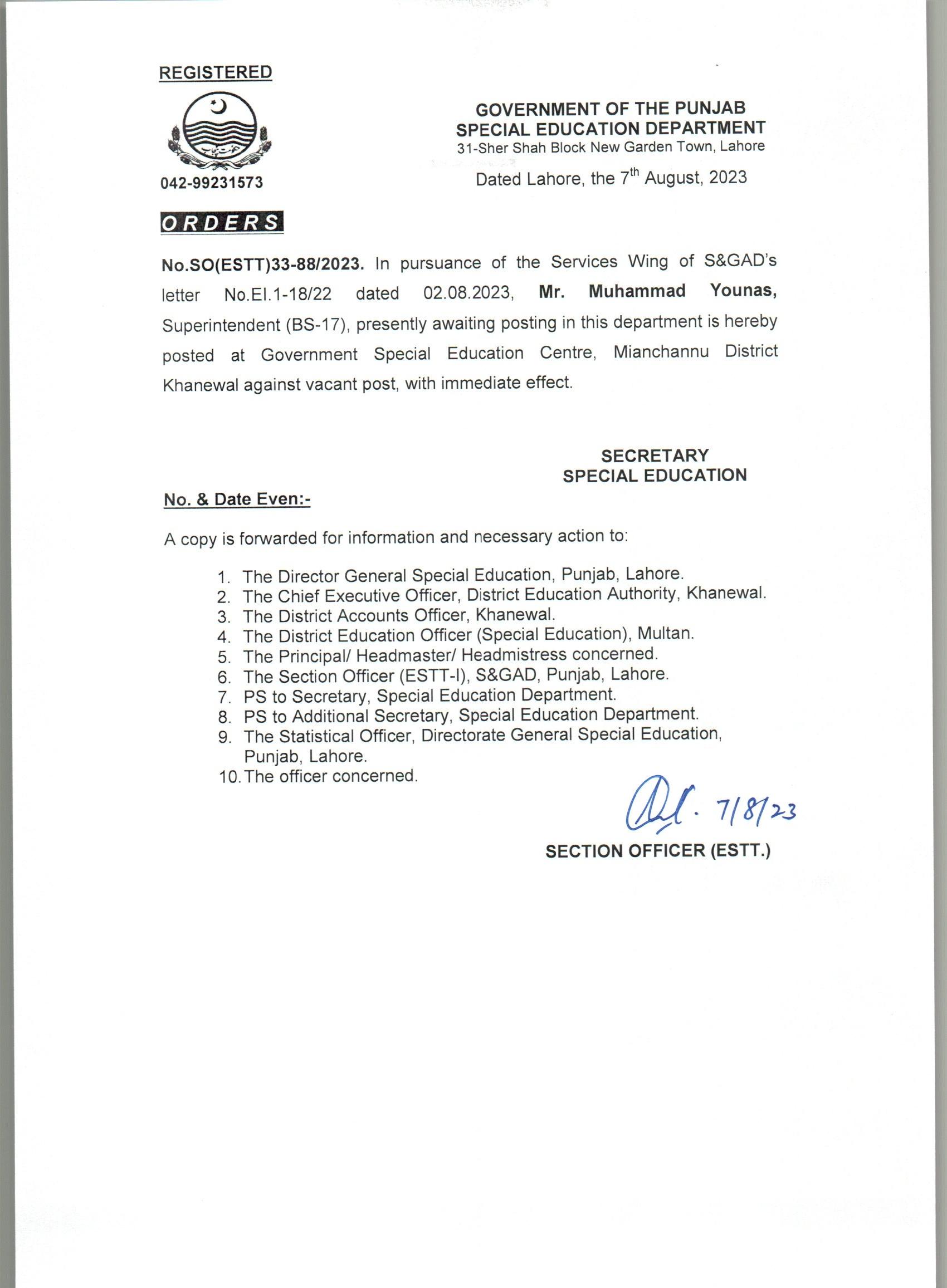 Transfer / Posting Orders
