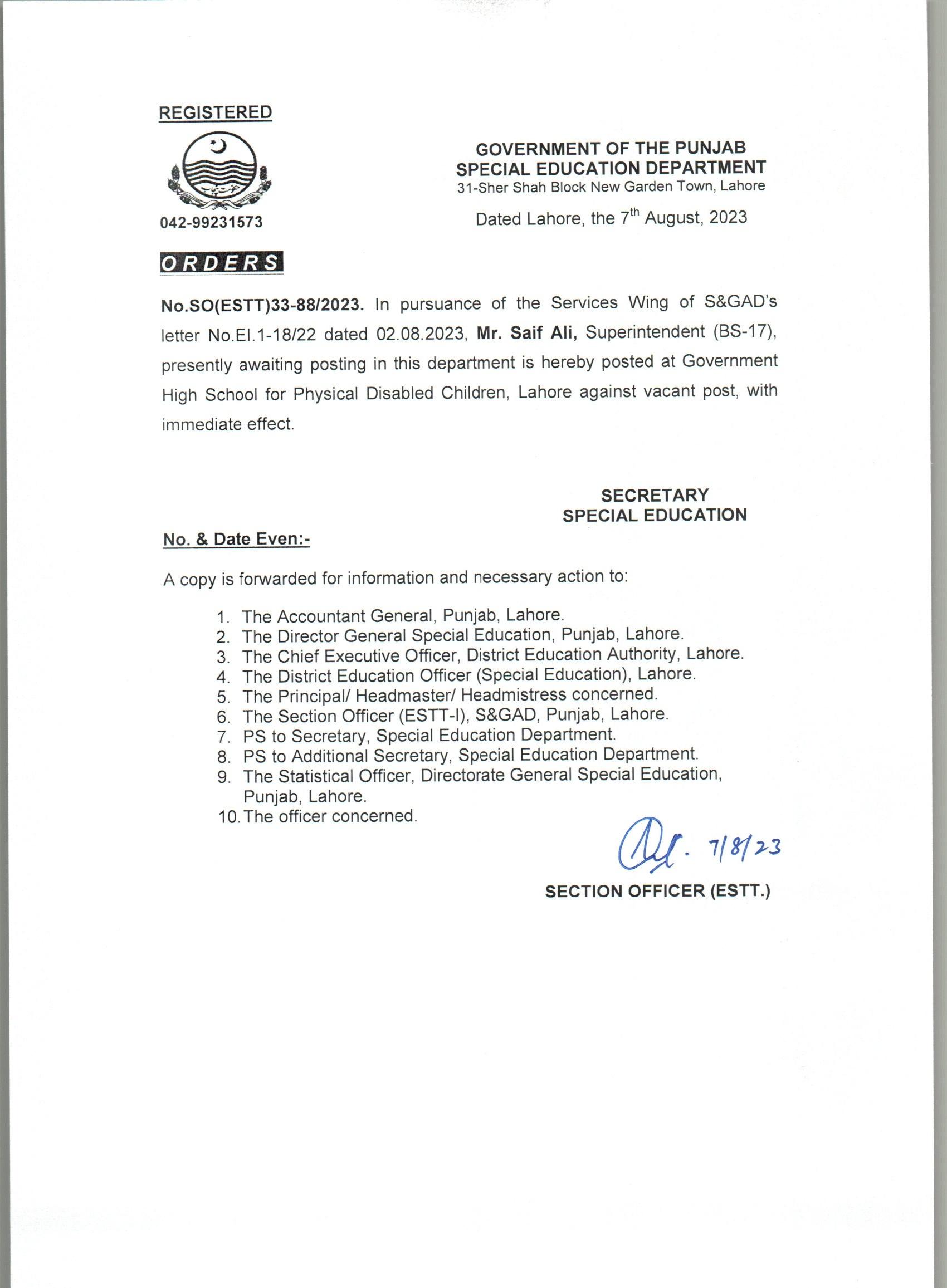 Transfer / Posting Orders