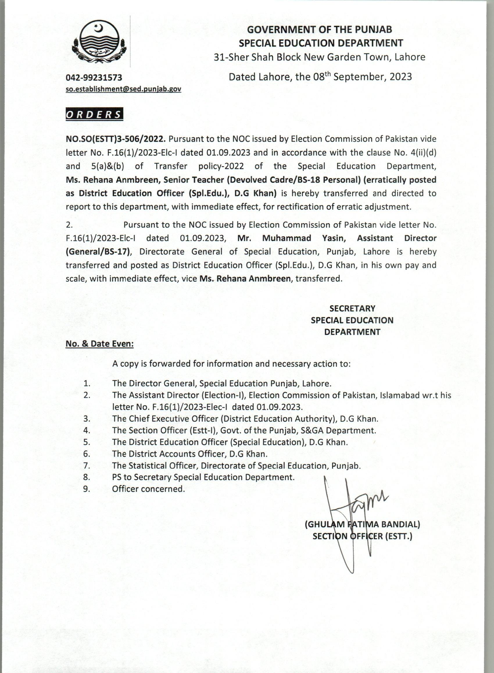 Transfer / Posting Orders