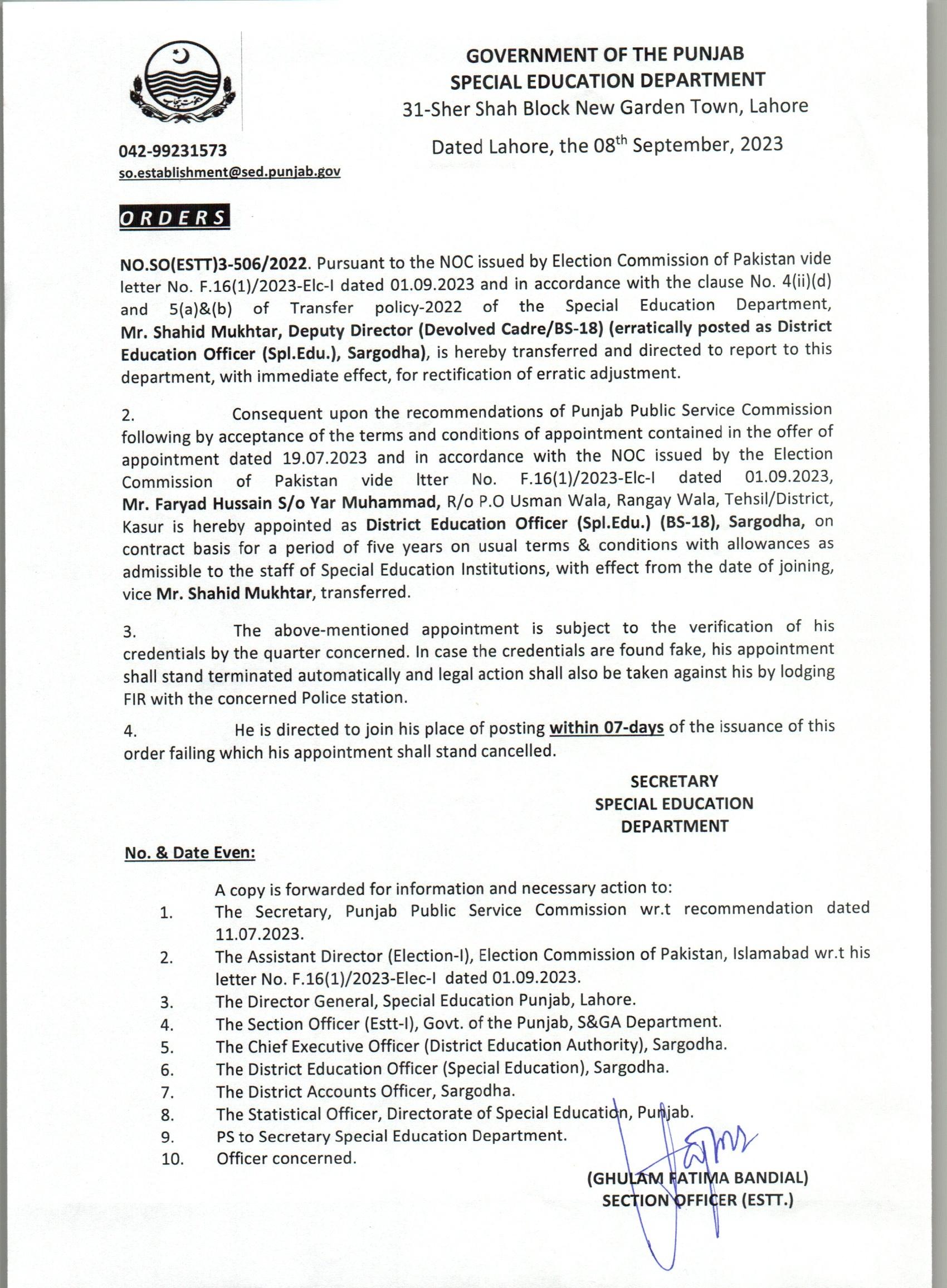 Transfer / Posting Orders