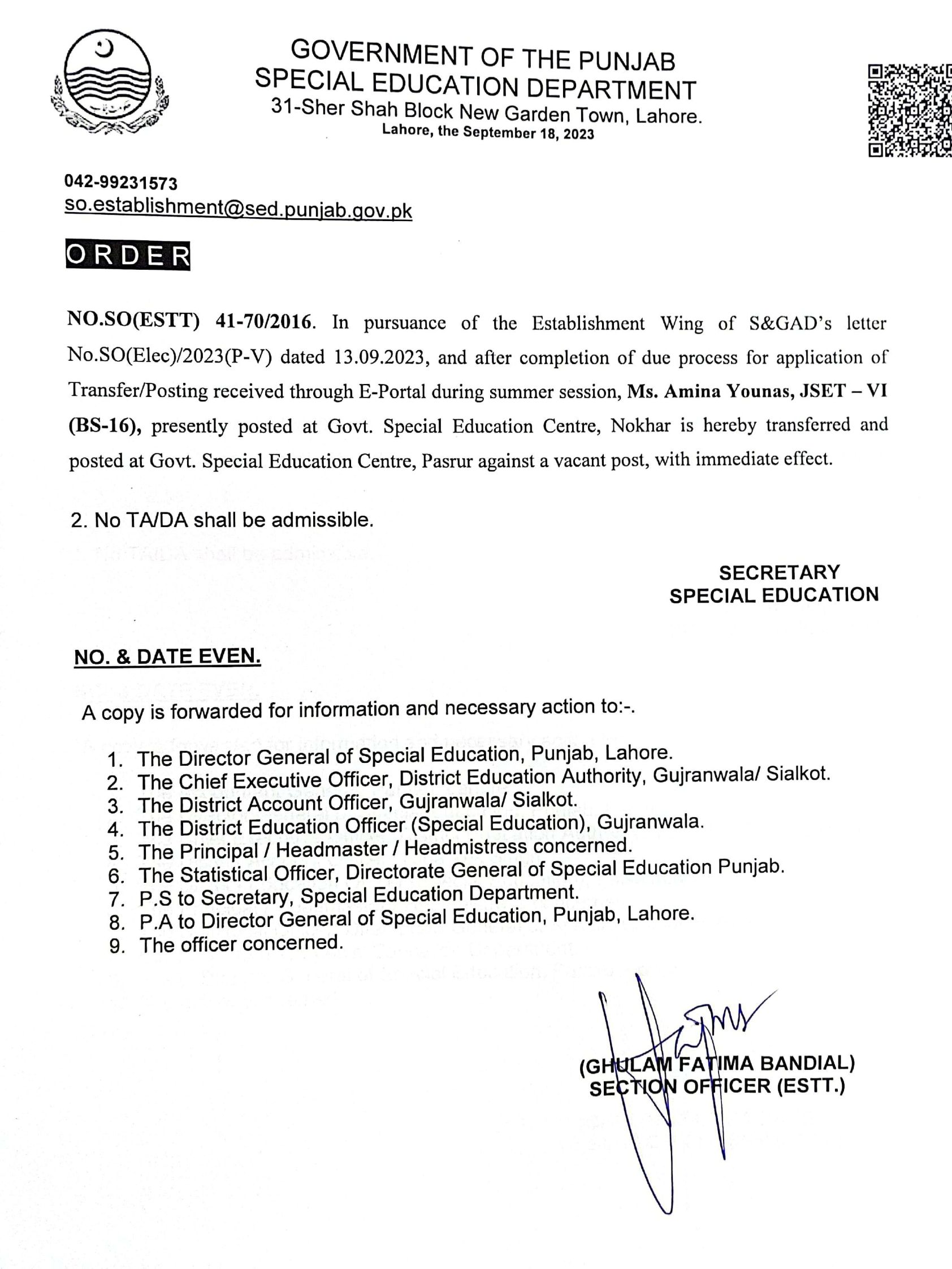 Transfer / Posting Orders