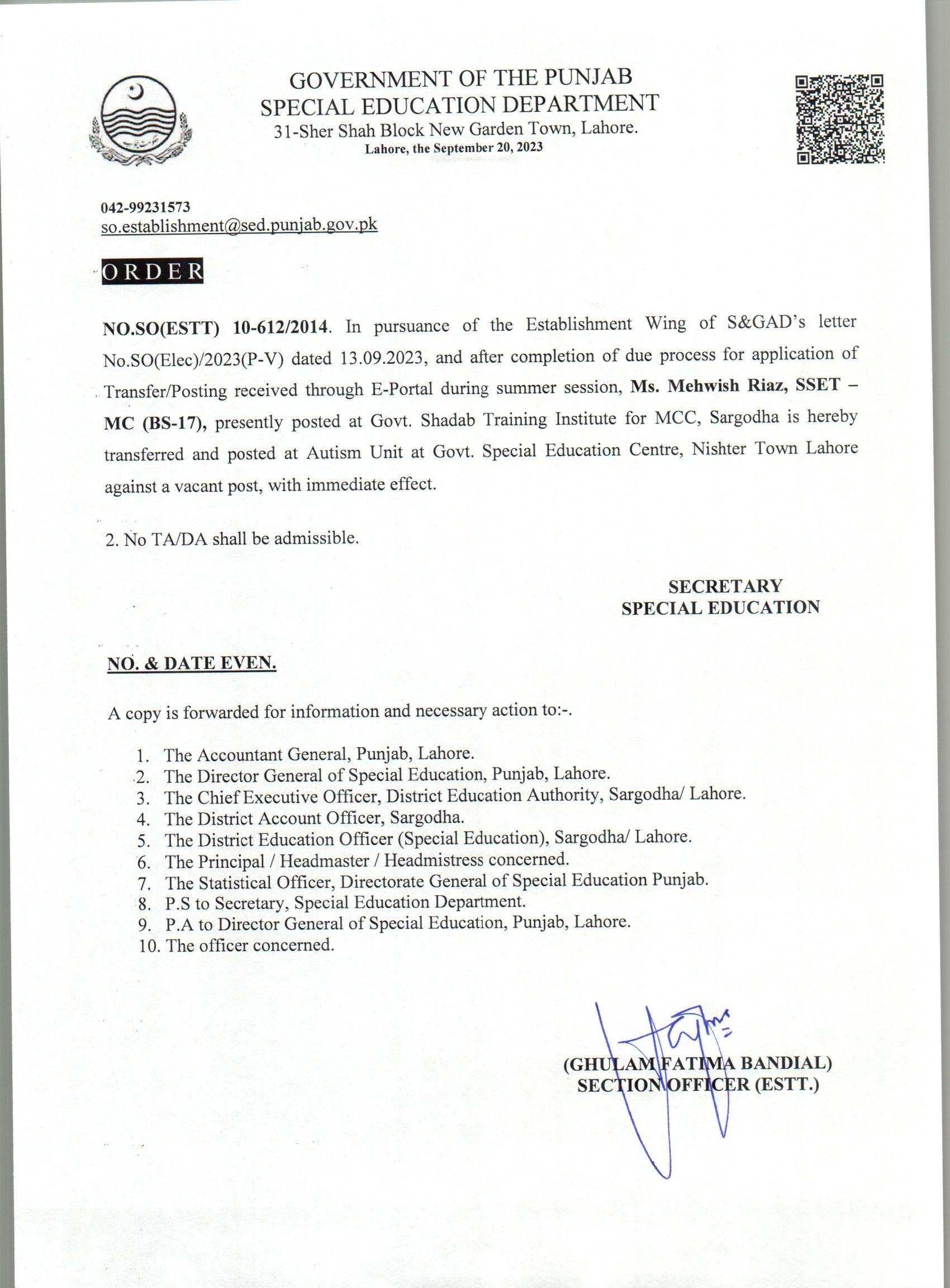 Transfer / Posting Orders