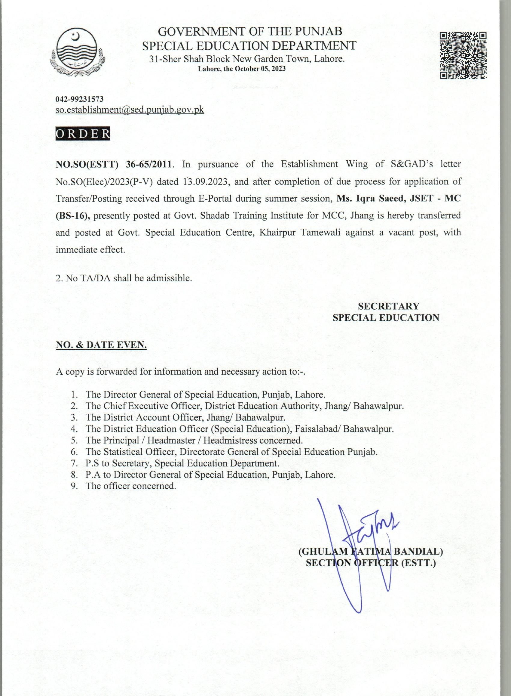 Transfer / Posting Orders