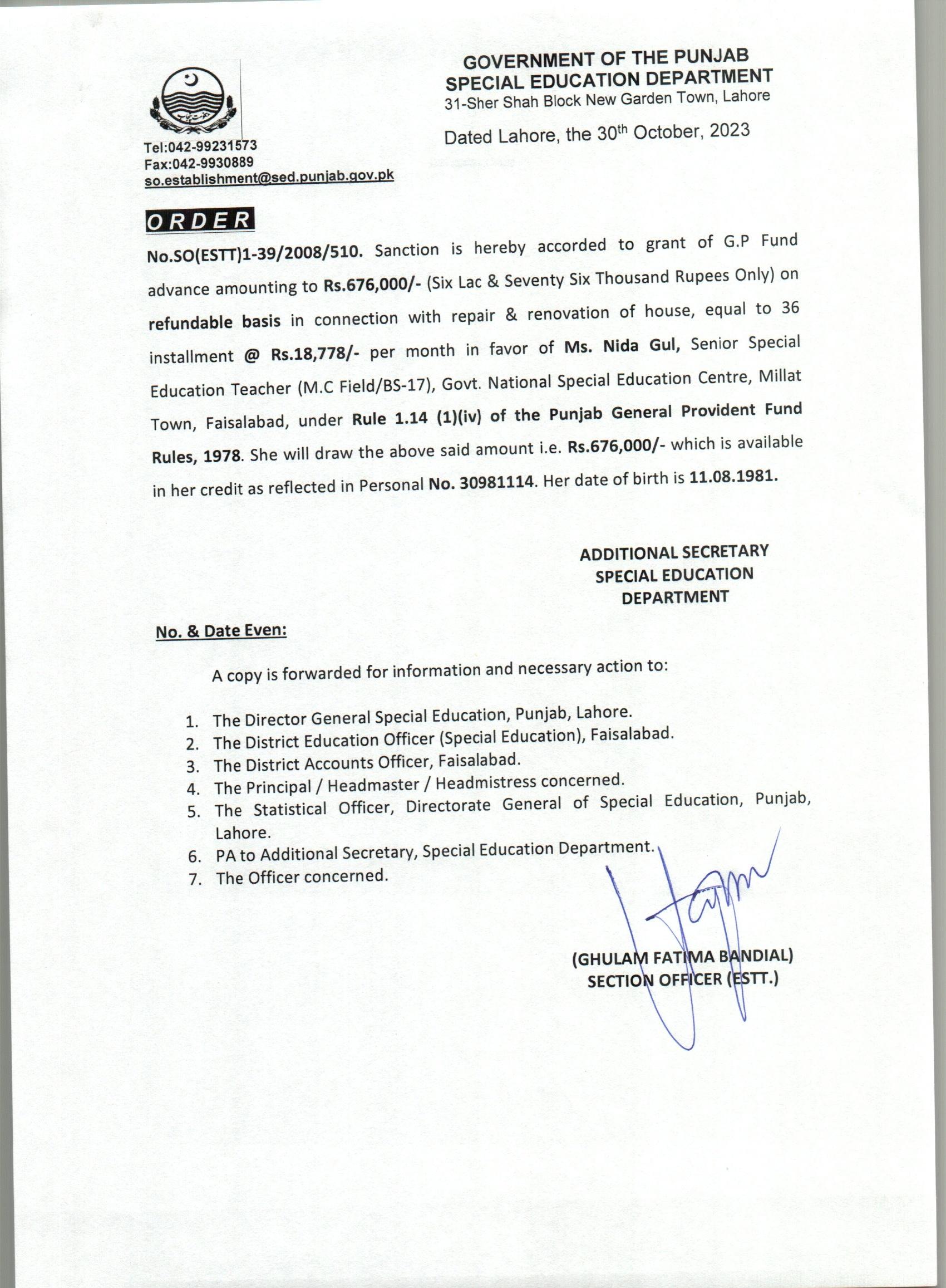 G.P Fund Advance