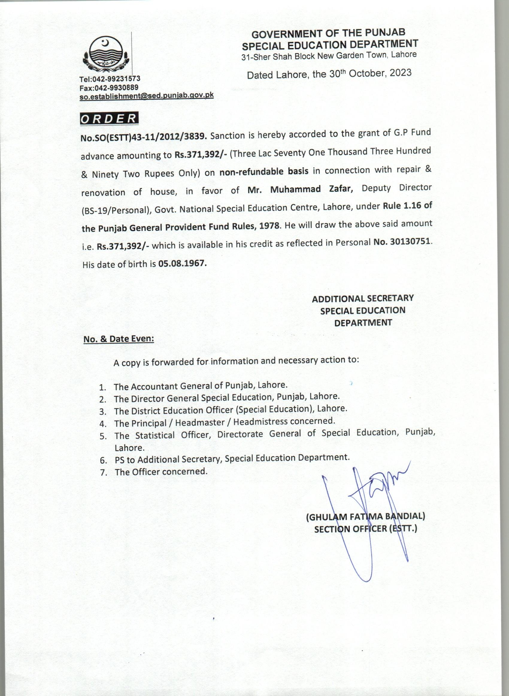 G.P Fund Advance