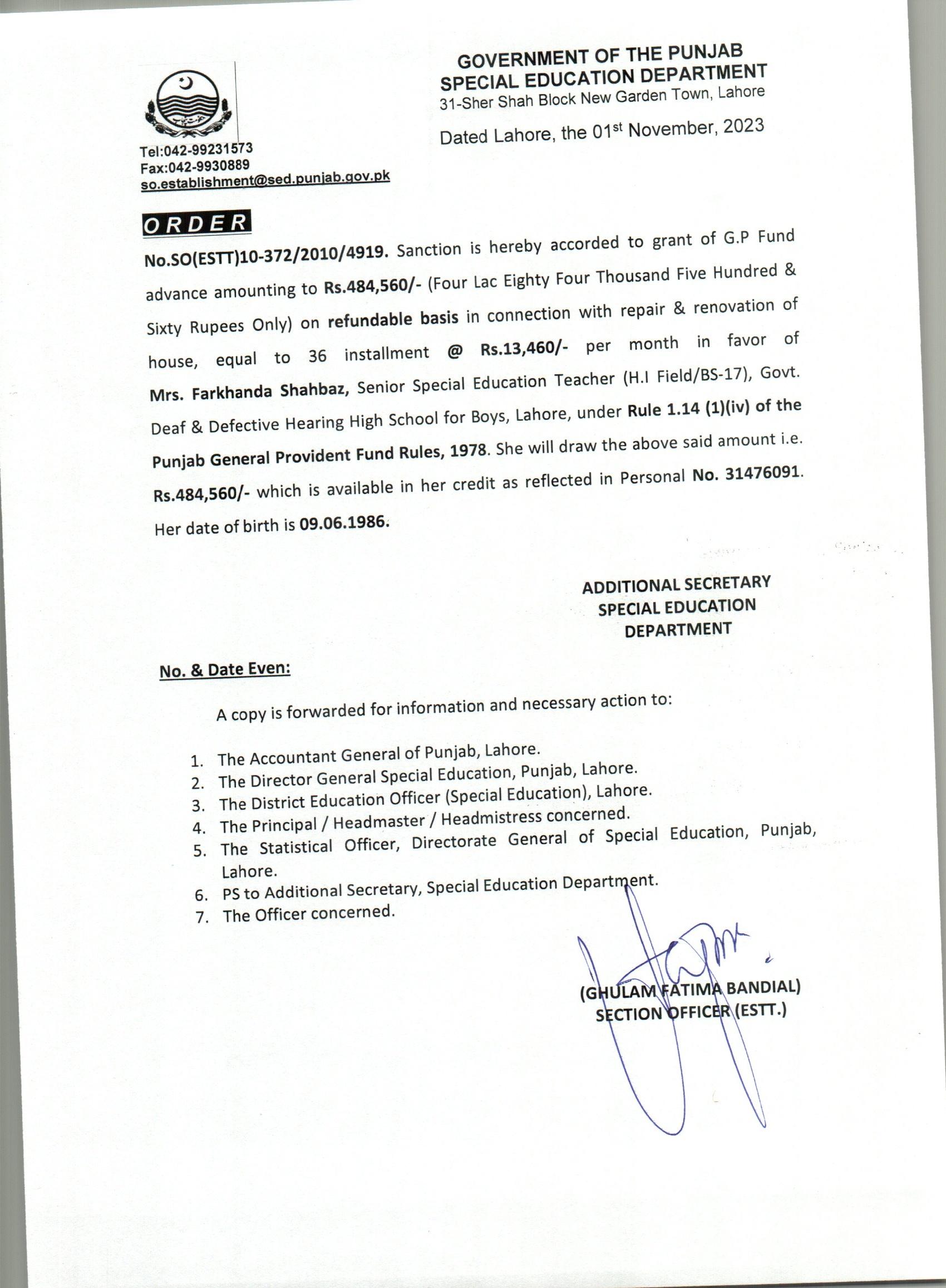 G.P Fund Advance