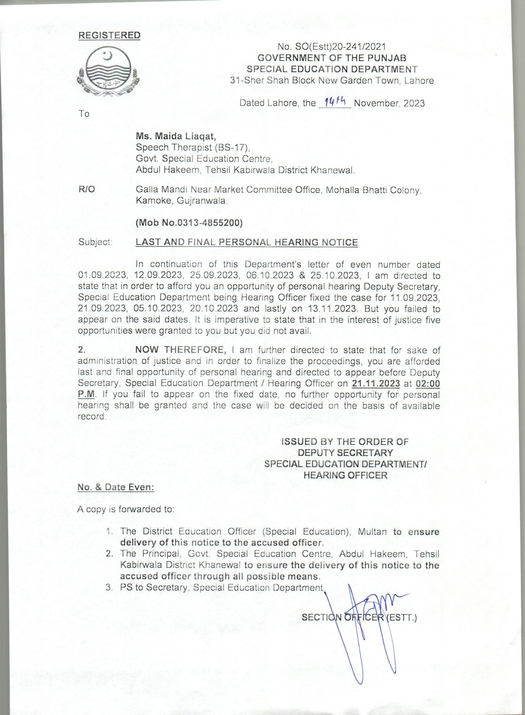 Speaking Orders / Show Cause Orders
