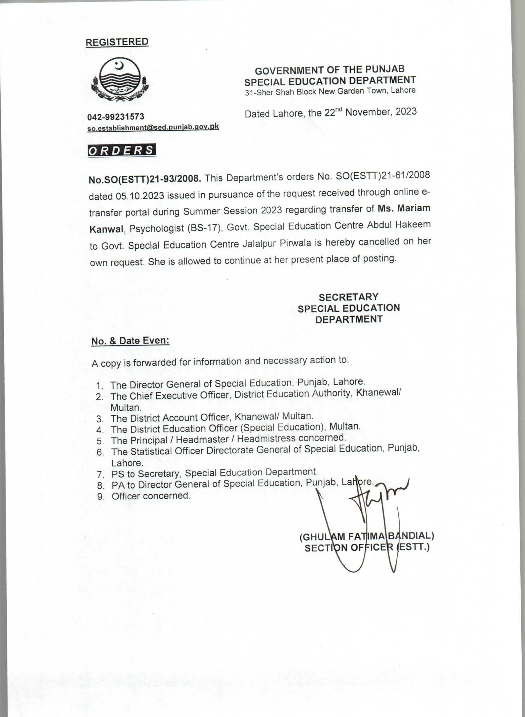 Transfer / Posting Orders