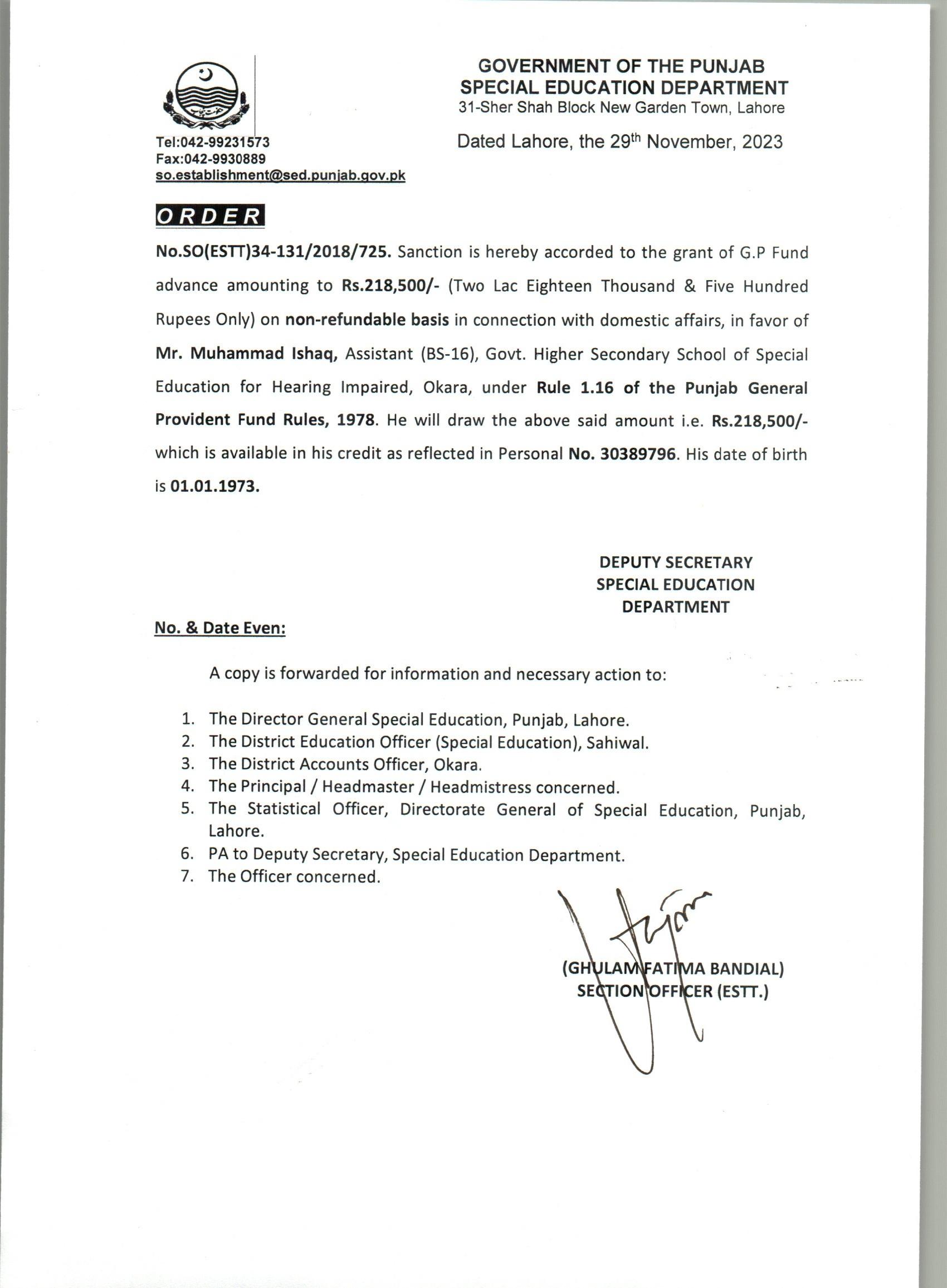 G.P Fund Advance