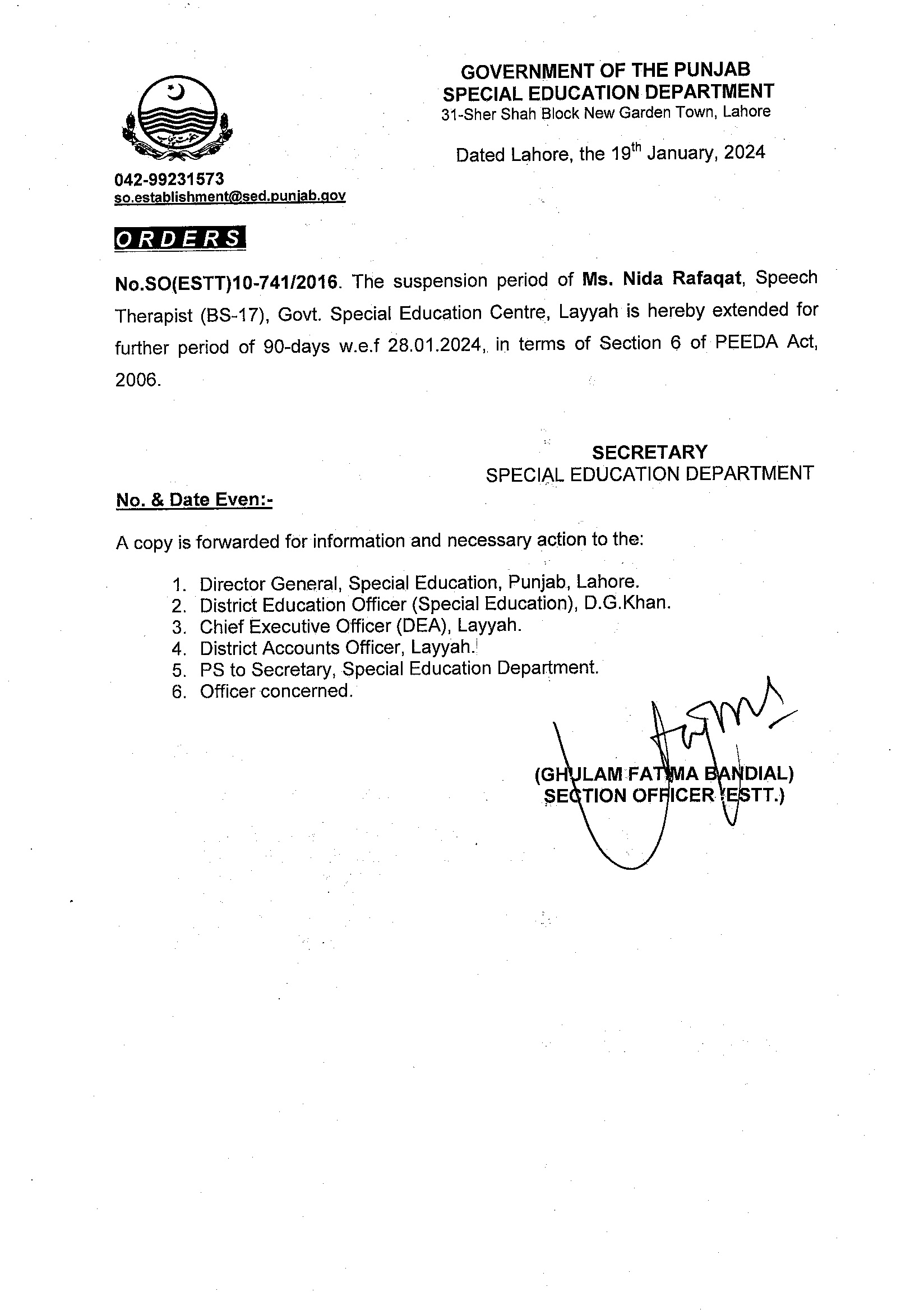Suspension / Termination Orders
