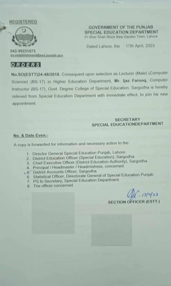Resignations Relieving Orders