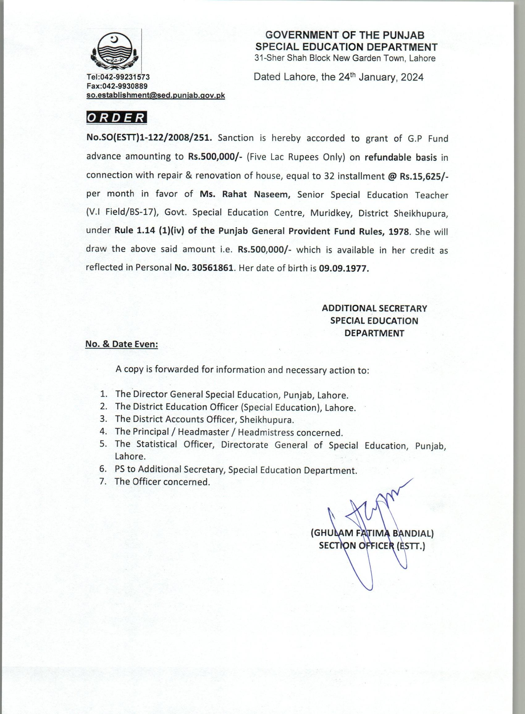 G.P Fund Advance