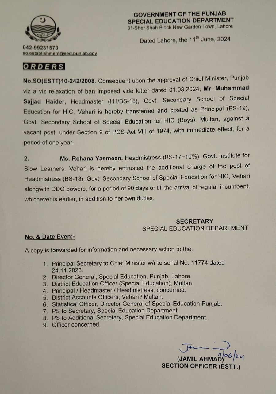 Transfer / Posting Orders