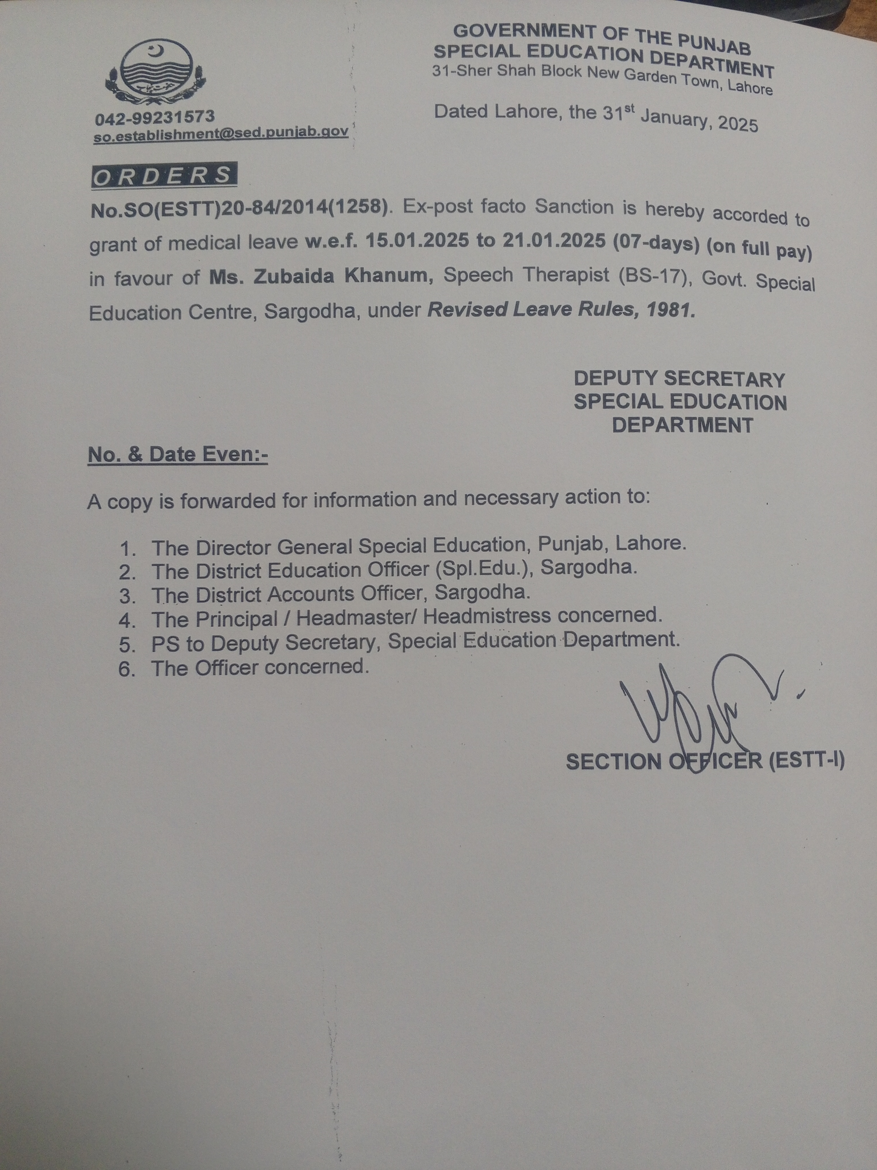 Category Leave Orders Date Monday, February 10, 2025 - 12:00 Order No SO(ESTT.)20-84/2014 File 17391815319436464681380650680579.jpg3.65 MB Employee Name Zubaida Khanum Prominent Notifications