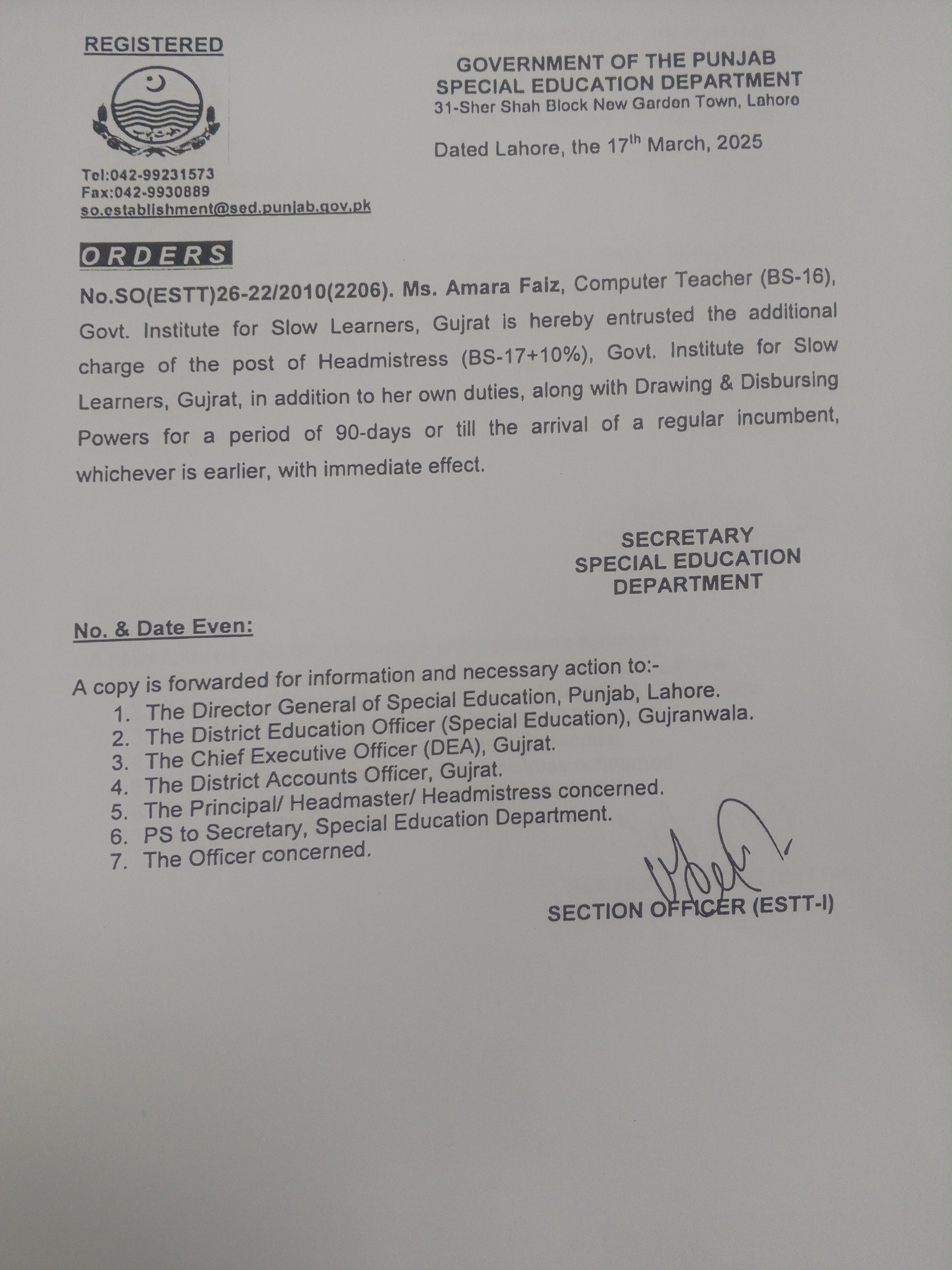 Category Additional Charge Orders Date Tuesday, March 18, 2025 - 12:00 Order No SO(ESTT.)26-22/2010 File 17422824423236992427405260812370.jpg3.46 MB Employee Name Amara Faiz Prominent Notifications