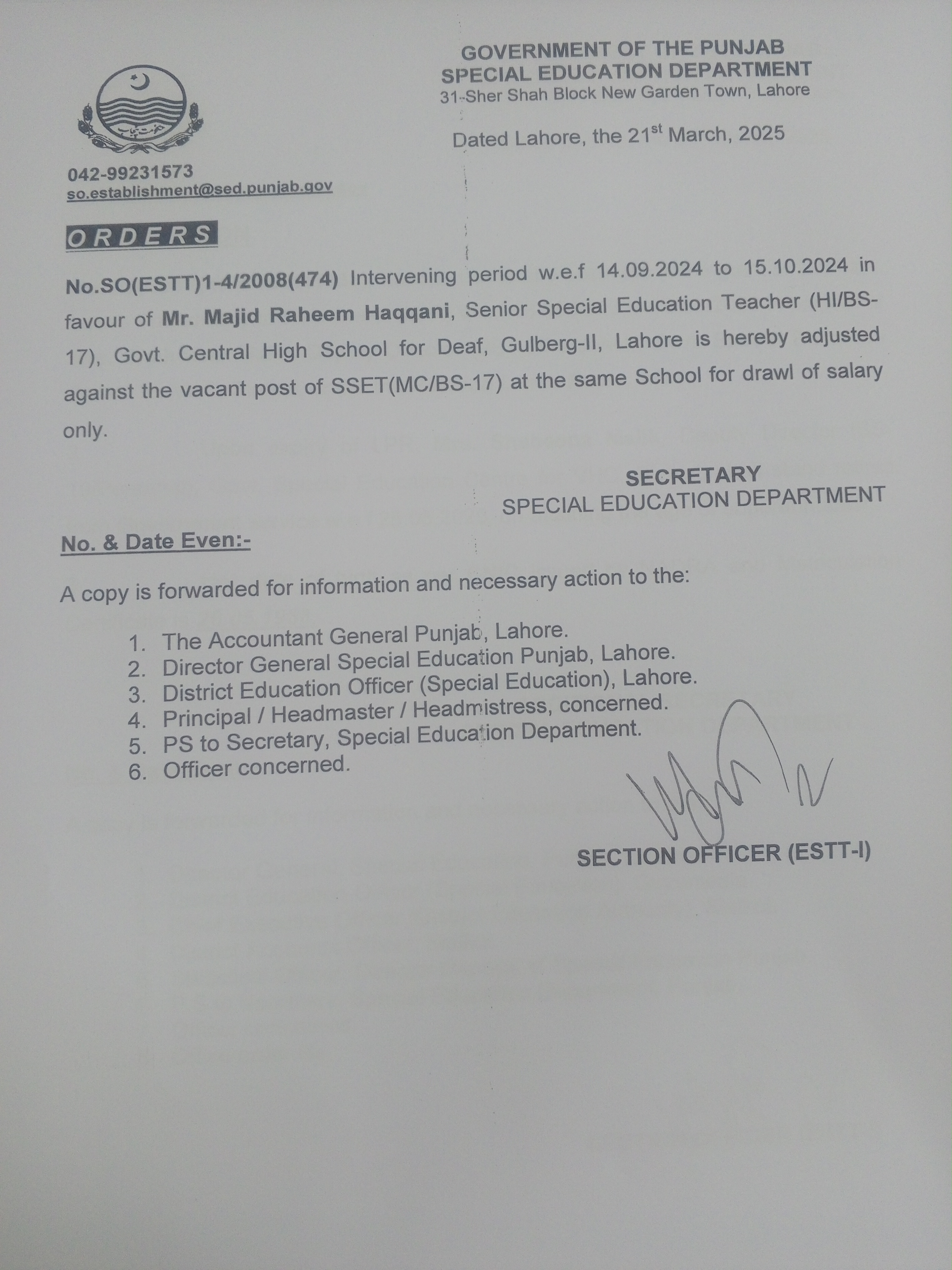 Category Others Date Monday, March 24, 2025 - 12:00 Order No SO(ESTT.)1-4/2008 File 17428022647008431897483327440613.jpg3.19 MB Employee Name Majid Raheem Haqqani Prominent Notifications