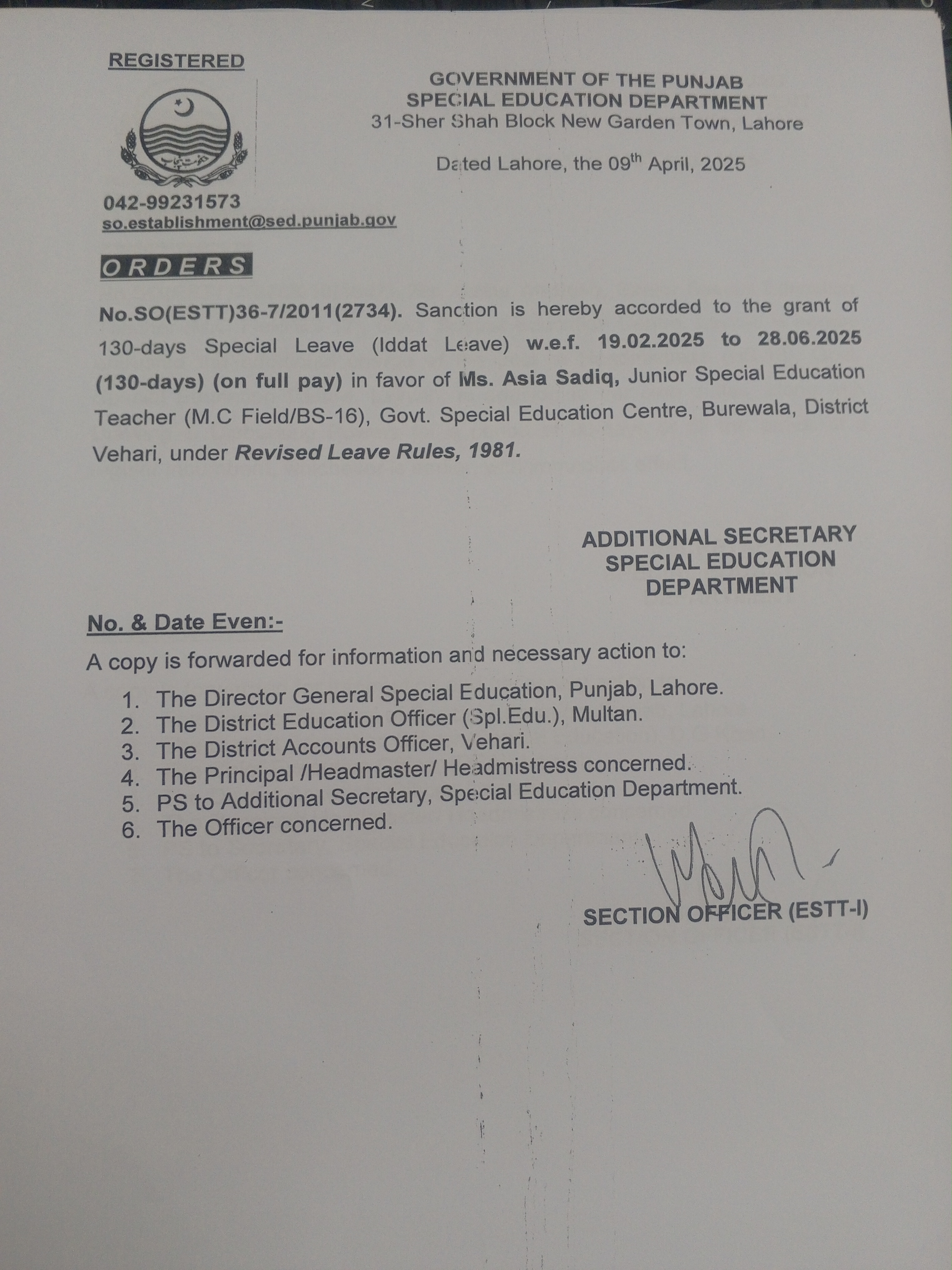 Category Leave Orders Date Thursday, April 10, 2025 - 12:00 Order No SO(ESTT.)36-7/2011 File 17442770936364442693150206874884.jpg3.44 MB Employee Name Asia Sadiq Prominent Notifications