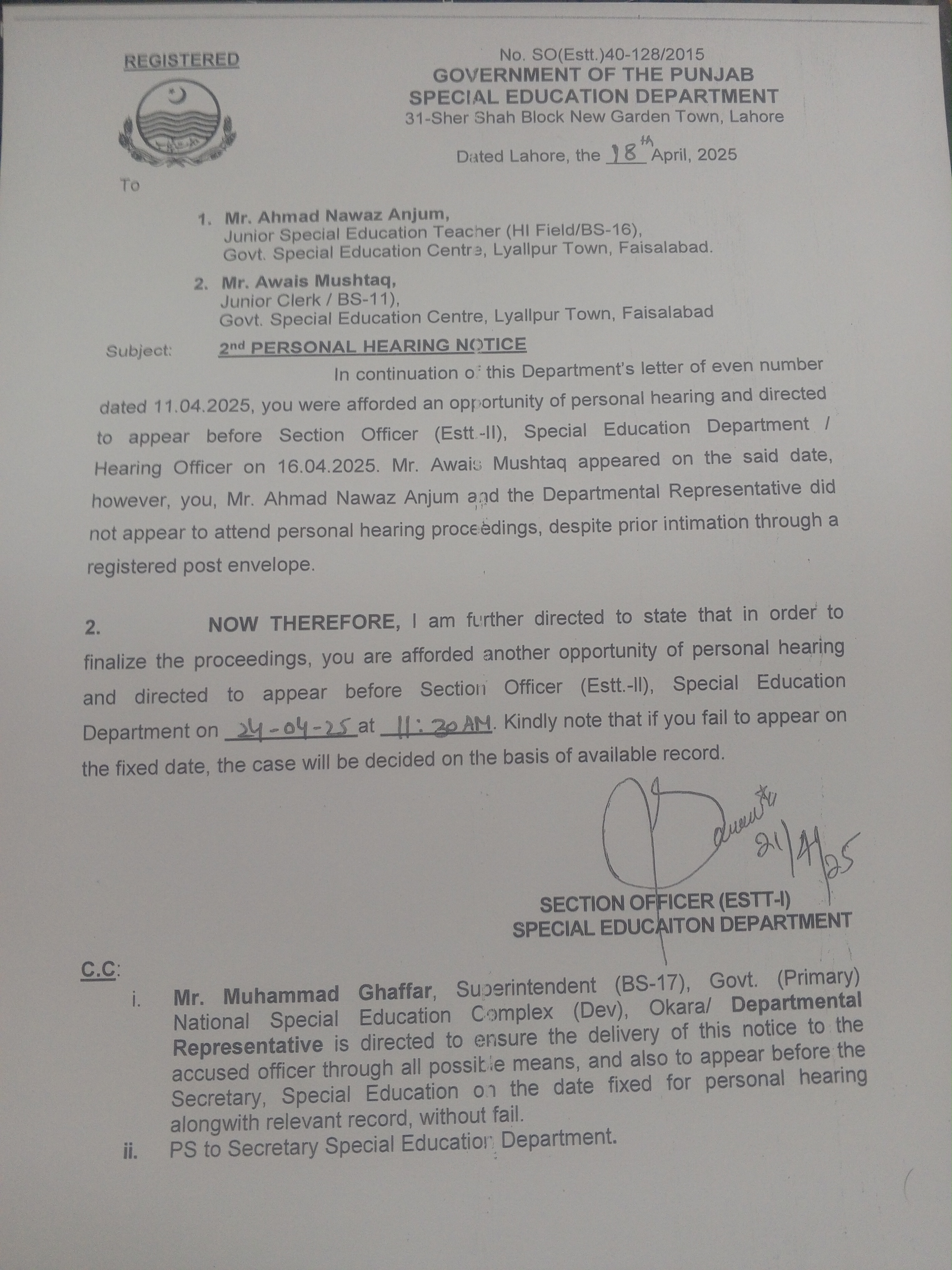 Ahmad Nawaz Anjum, Awais Mushtaq