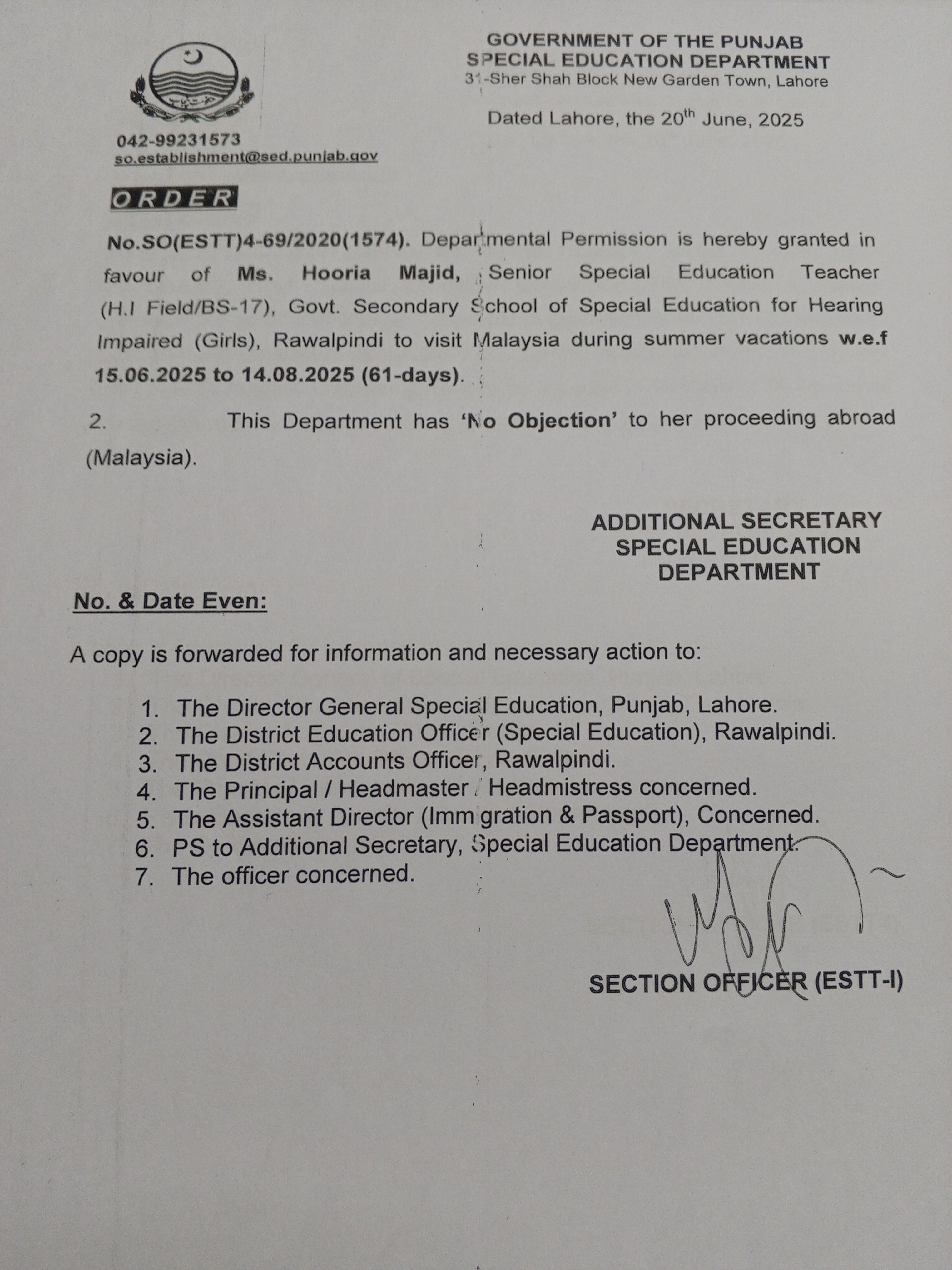Category Leave Orders Date Monday, June 23, 2025 - 12:00 Order No SO(ESTT.)4-69/2020 File 17506691382007387310570385915669.jpg3.61 MB Employee Name Hooria Majid Prominent Notifications