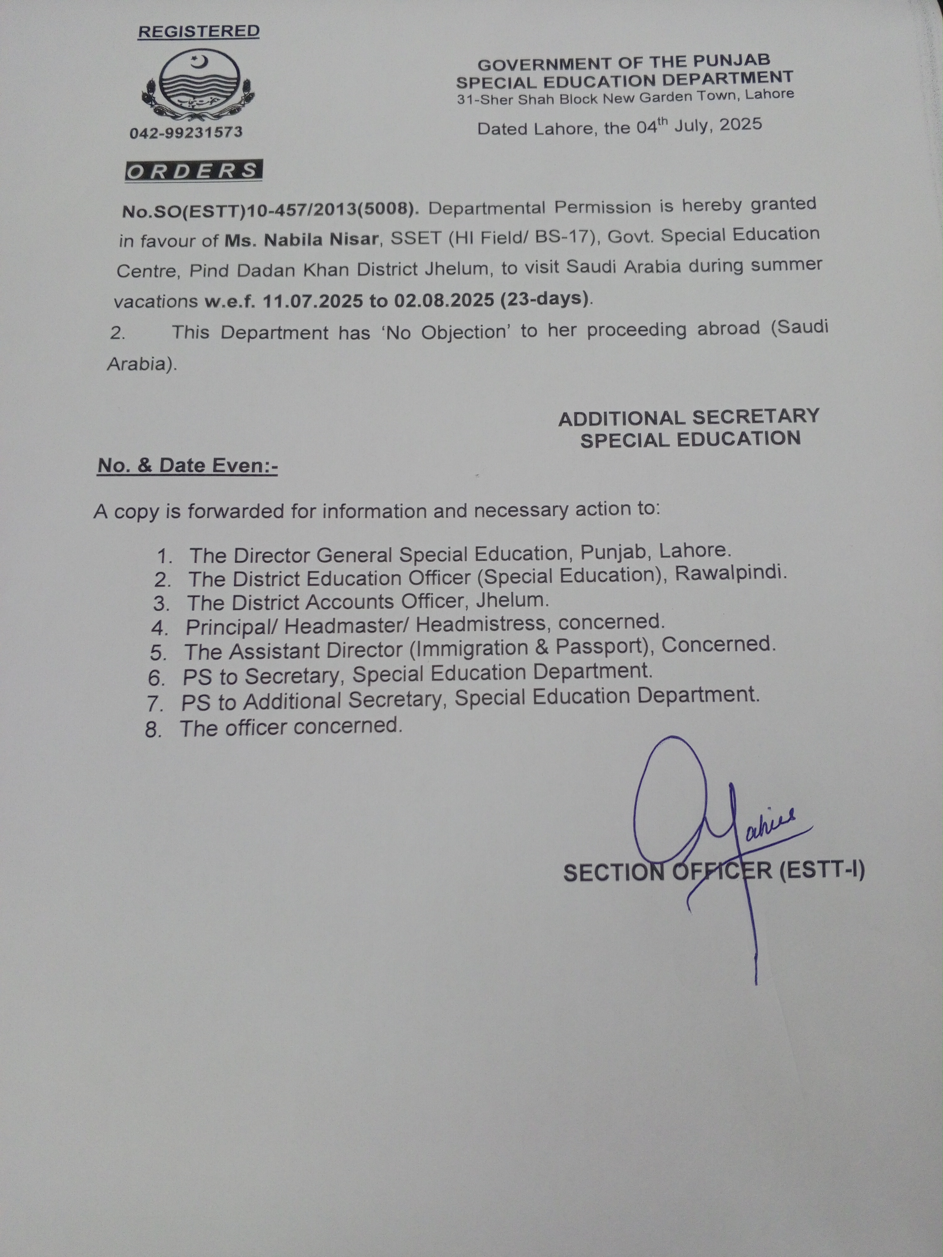 Category Leave Orders Date Friday, July 4, 2025 - 12:00 Order No SO(ESTT.)10-457/2013 File 1751621823789163594800149718426.jpg3.39 MB Employee Name Nabila Nisar Prominent Notifications