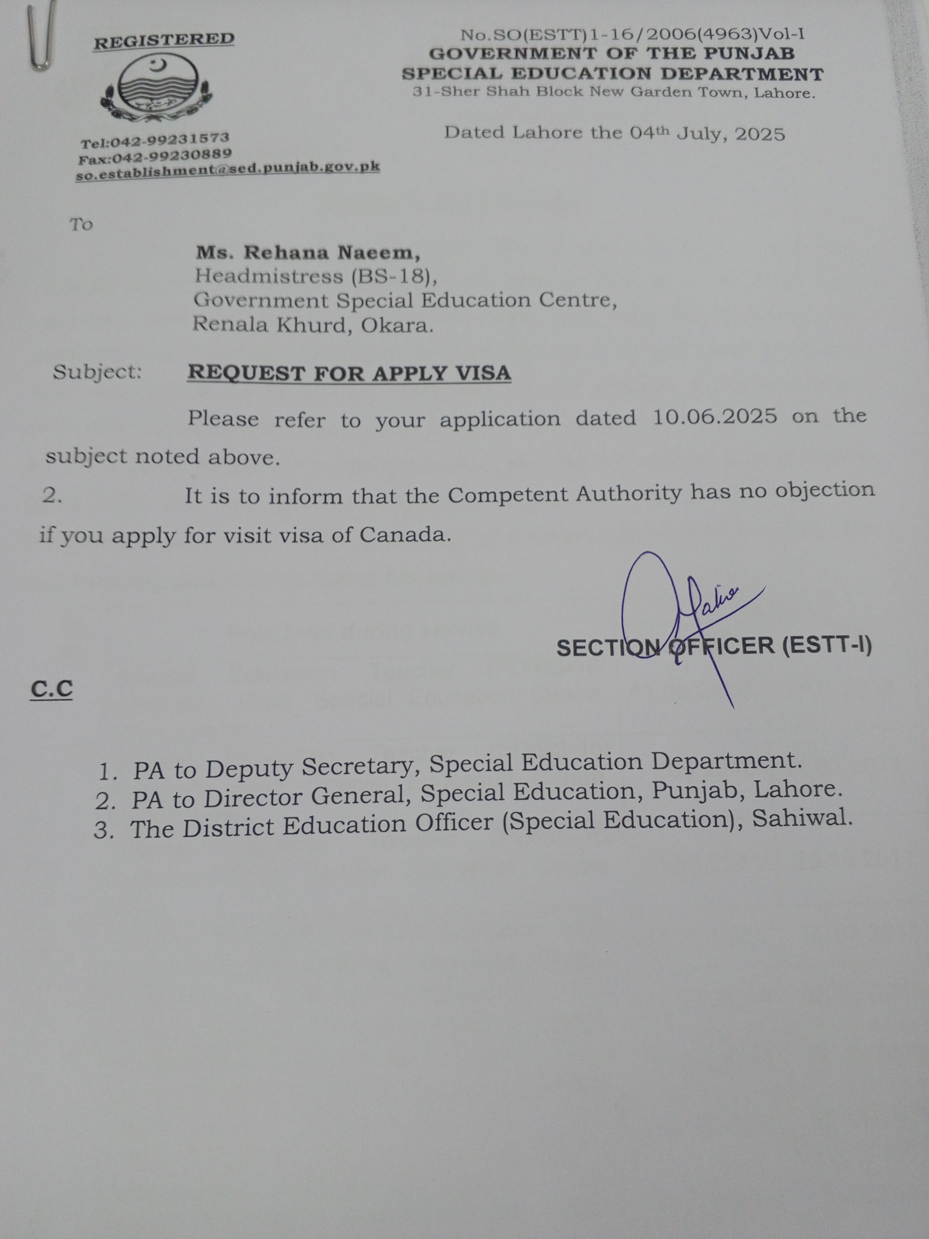 Category Departmental Permissions Date Friday, July 4, 2025 - 12:00 Order No SO(ESTT.)1-16/2006 File 17516232869752239054506808090896.jpg3.24 MB Employee Name Rehana Naeem Prominent Notifications