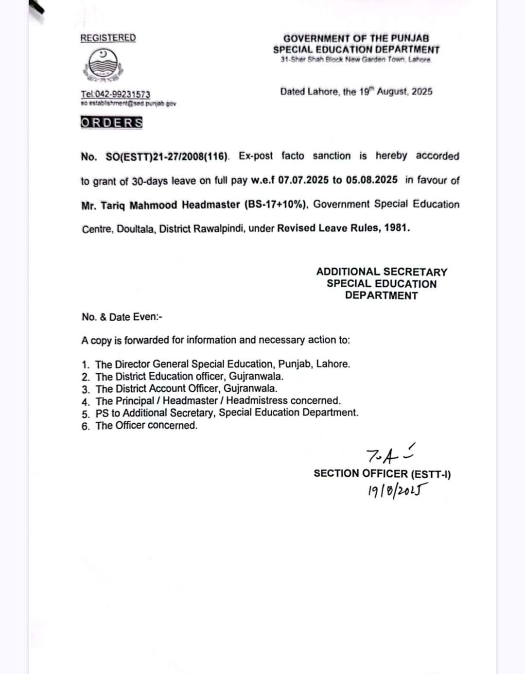 Leave Orders
