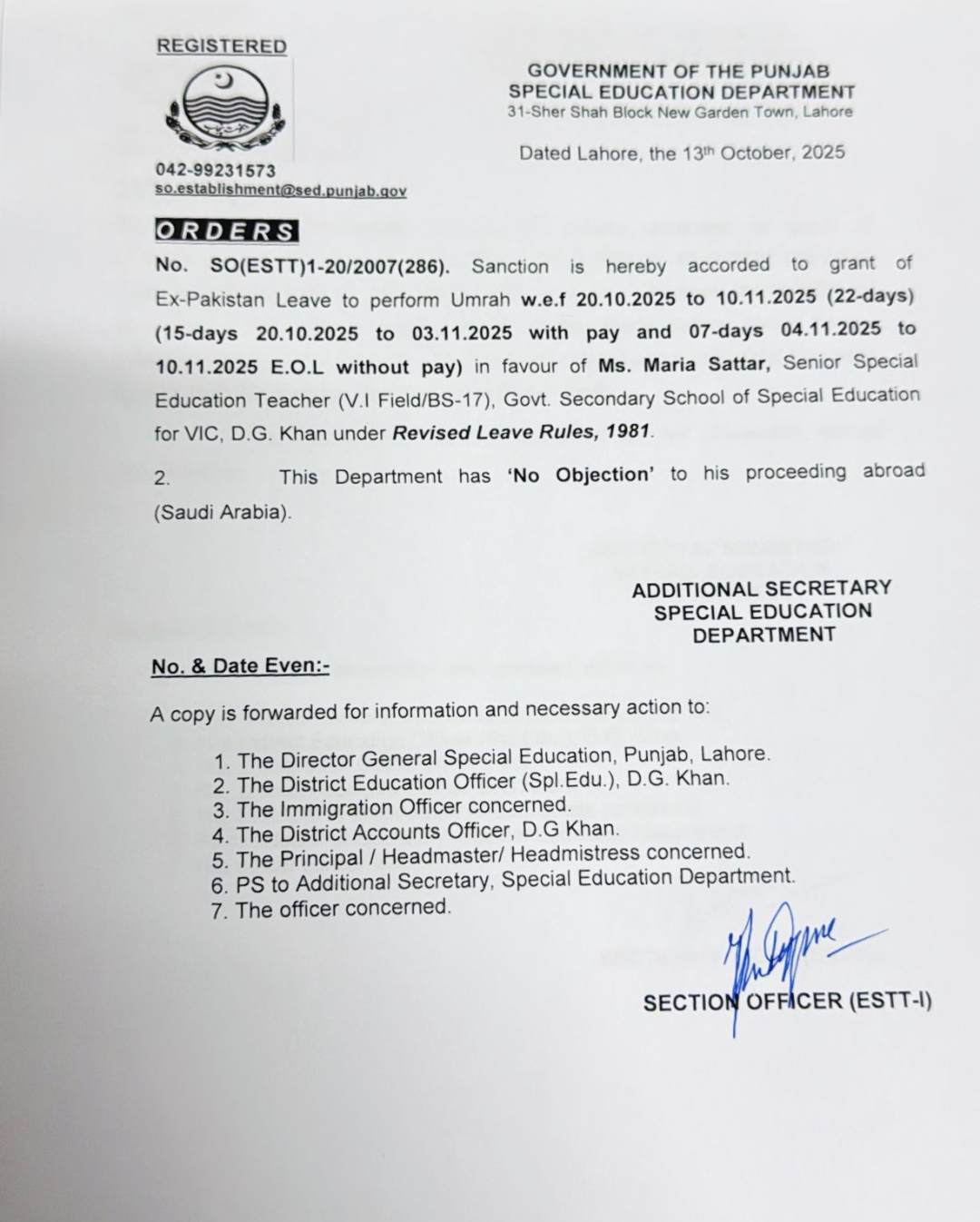 Leave Orders