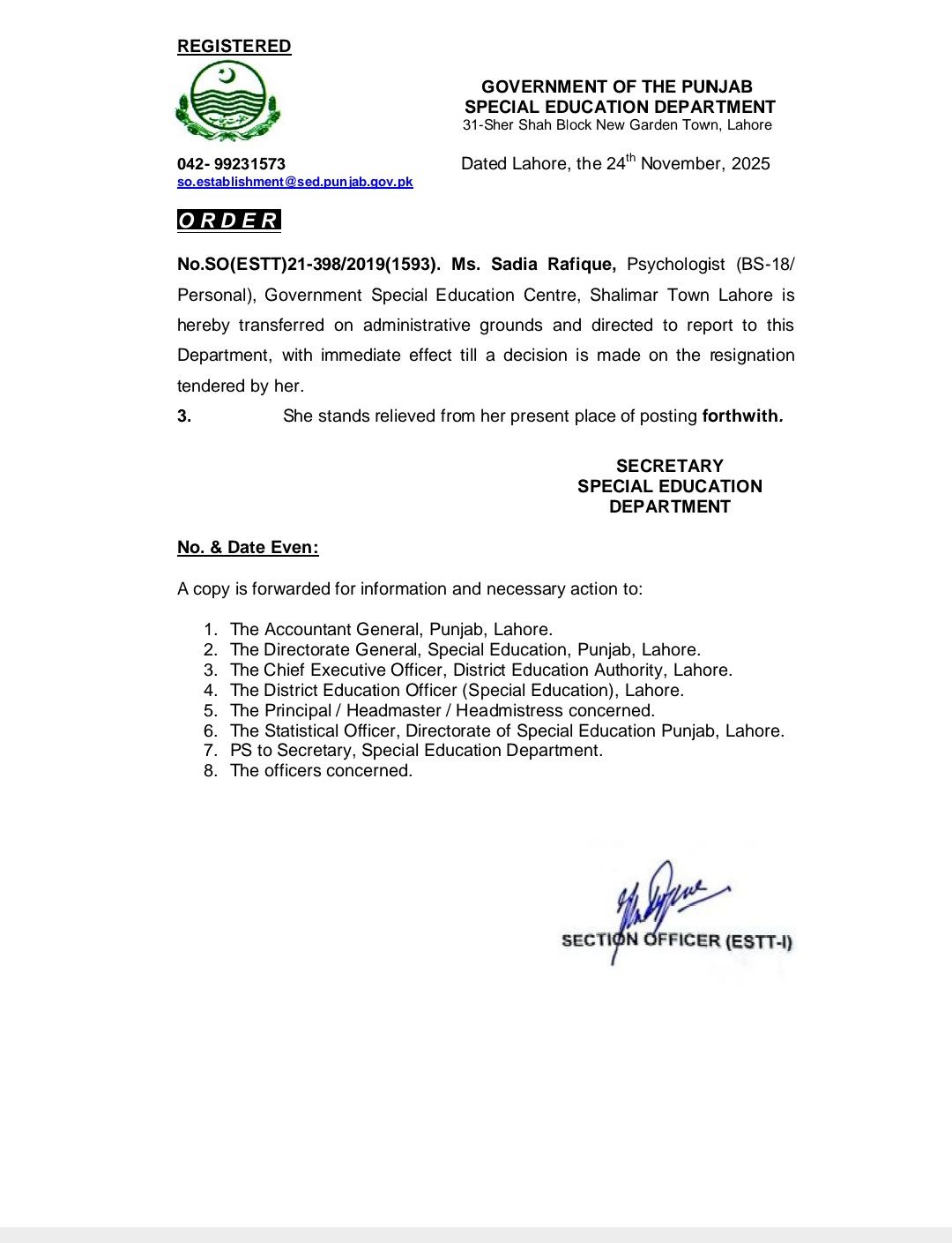 Transfer / Posting Orders