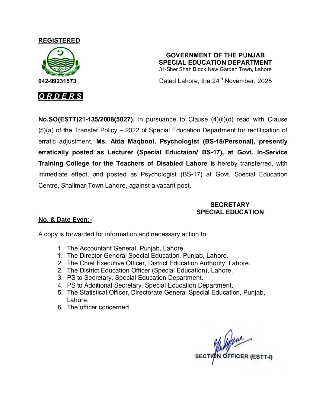 Transfer / Posting Orders