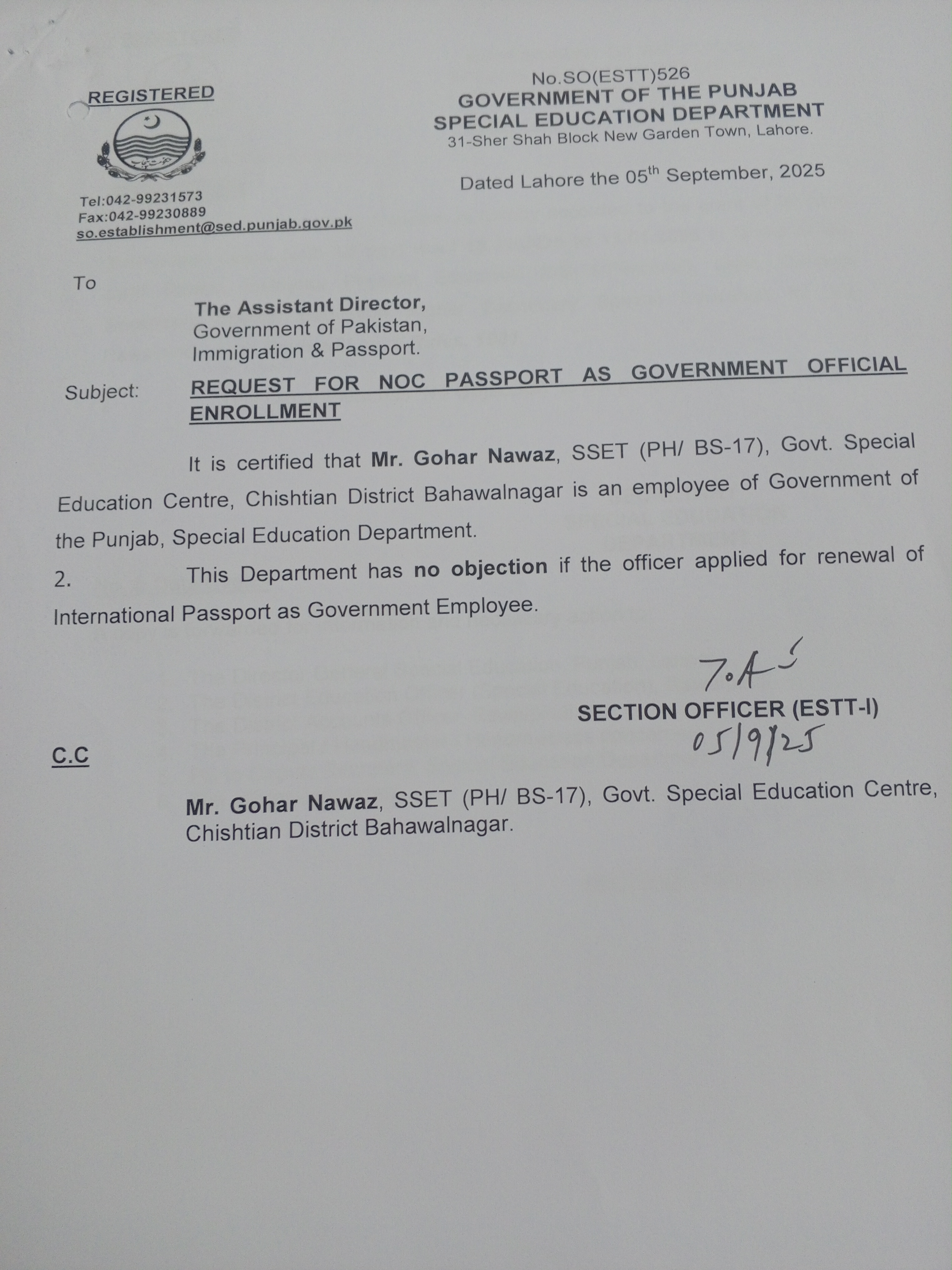 Category Departmental Permissions Date Tuesday, December 9, 2025 - 12:00 Order No SO(ESTT.)526 File 1765274131513566413687900380812.jpg3.19 MB Employee Name Gohar Nawaz Prominent Notifications