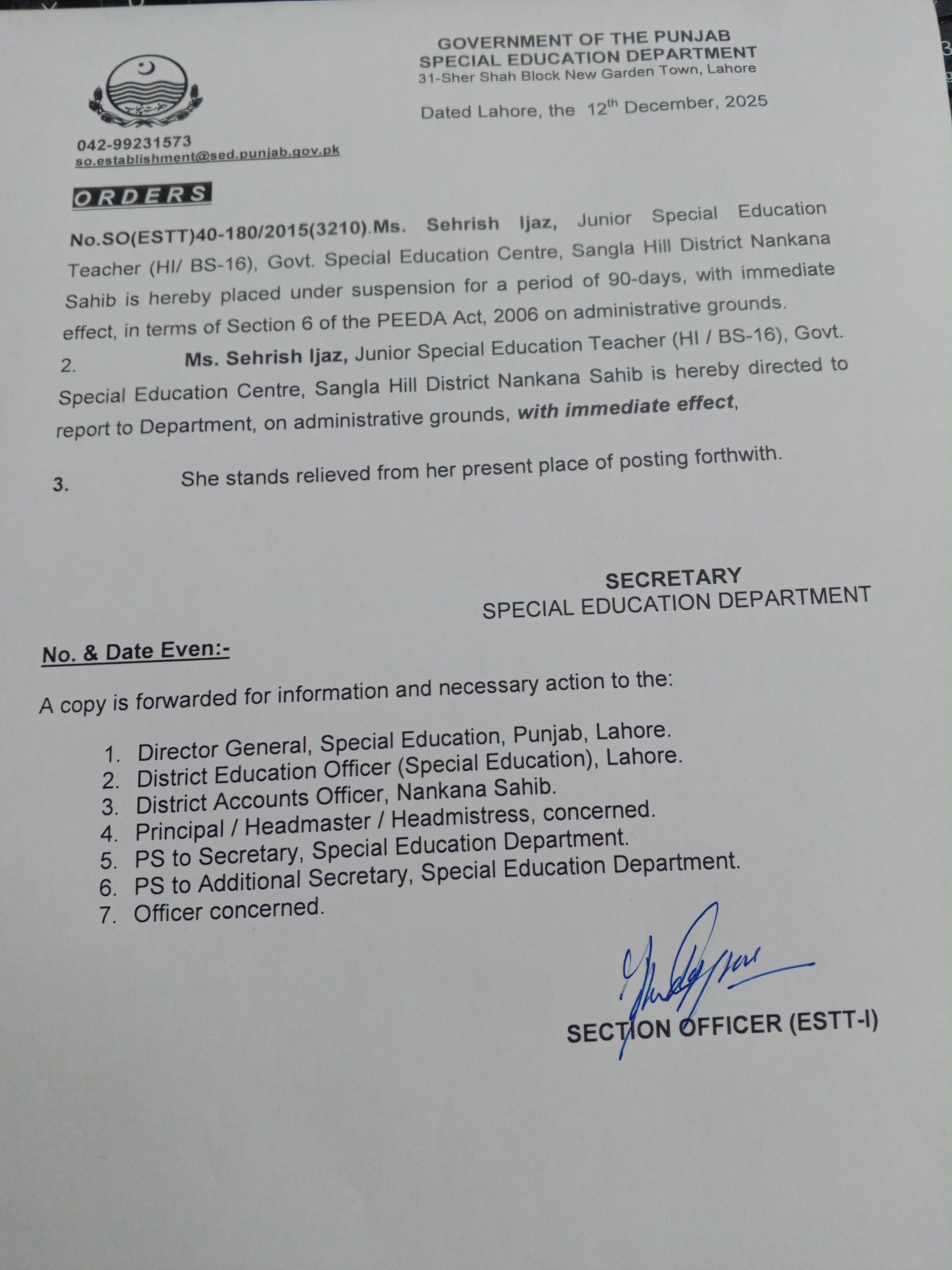 Suspension / Termination Orders