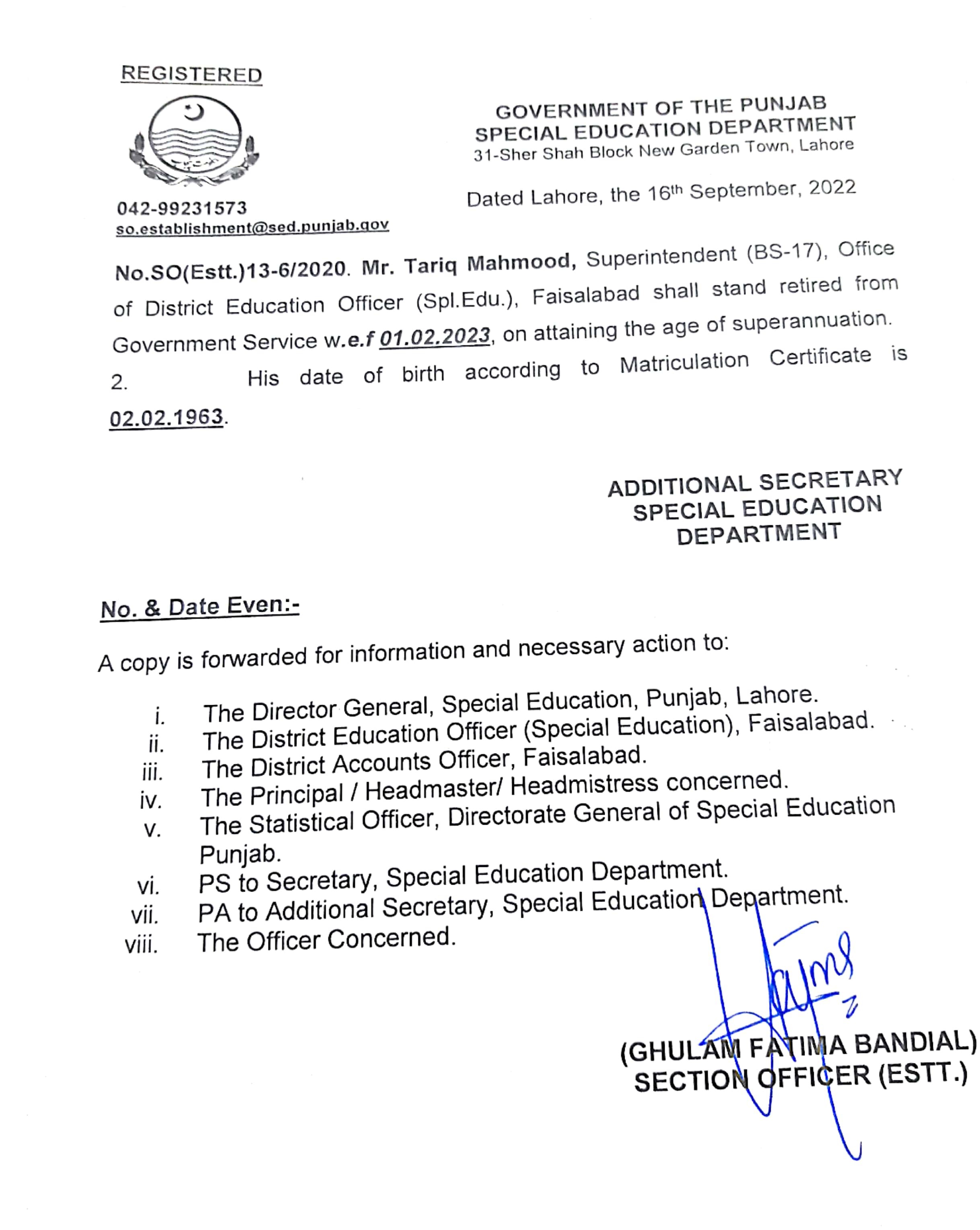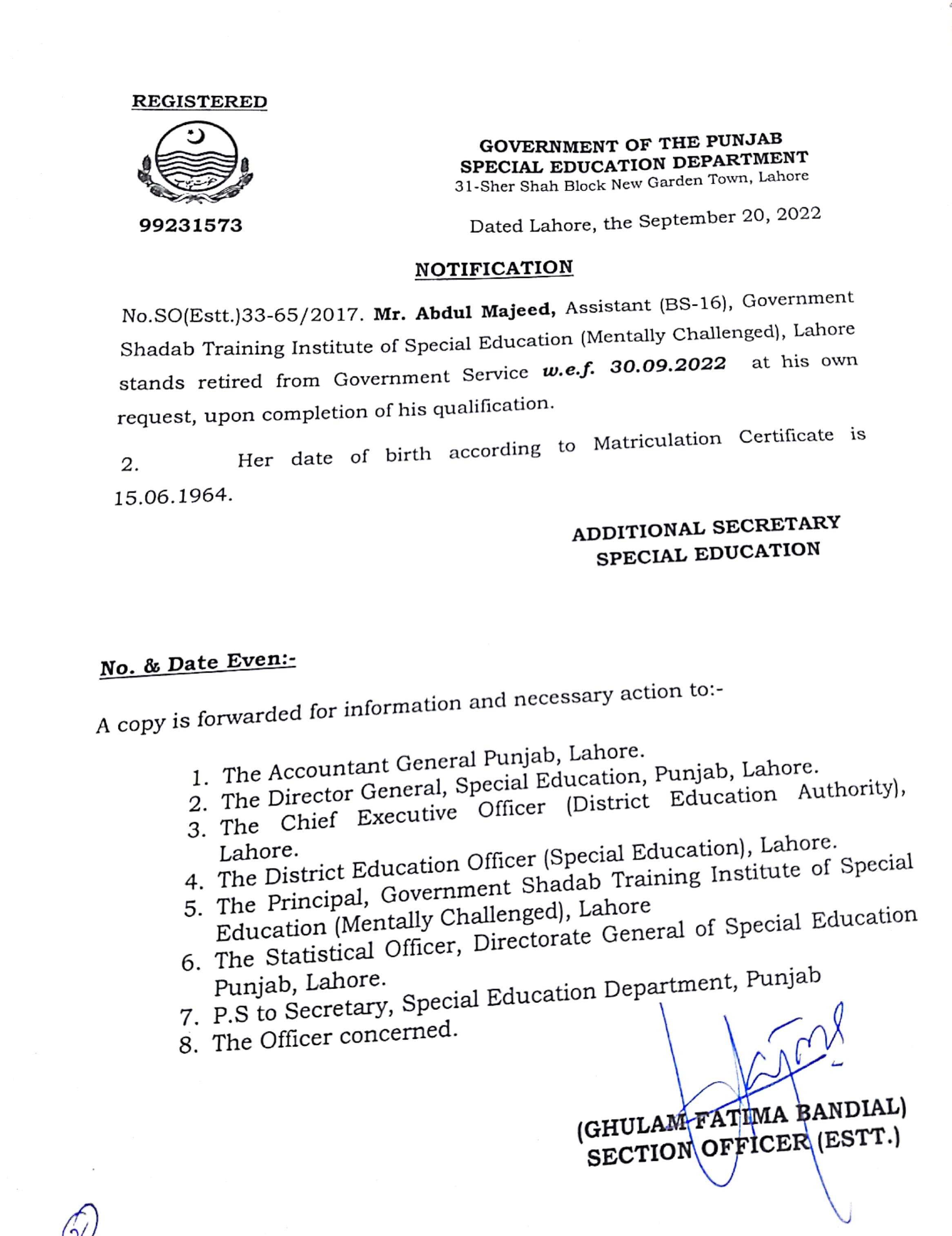 Retirement Notification |