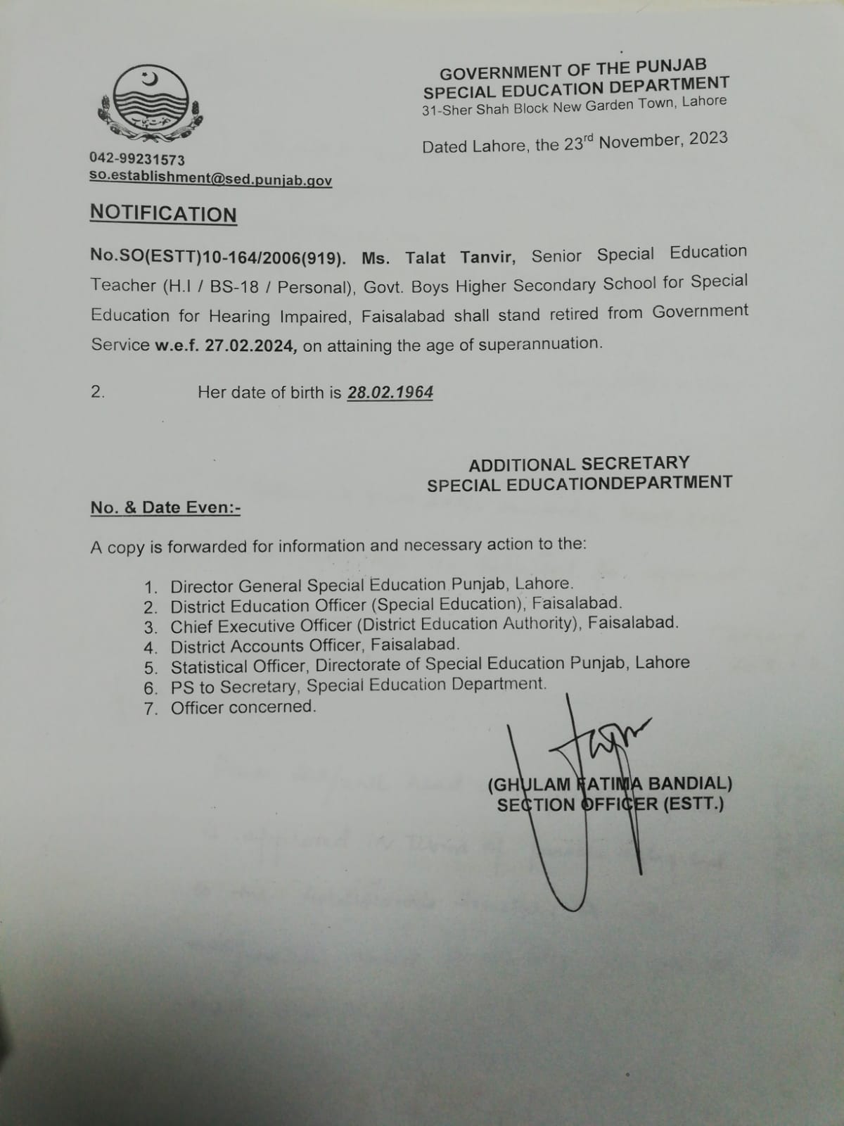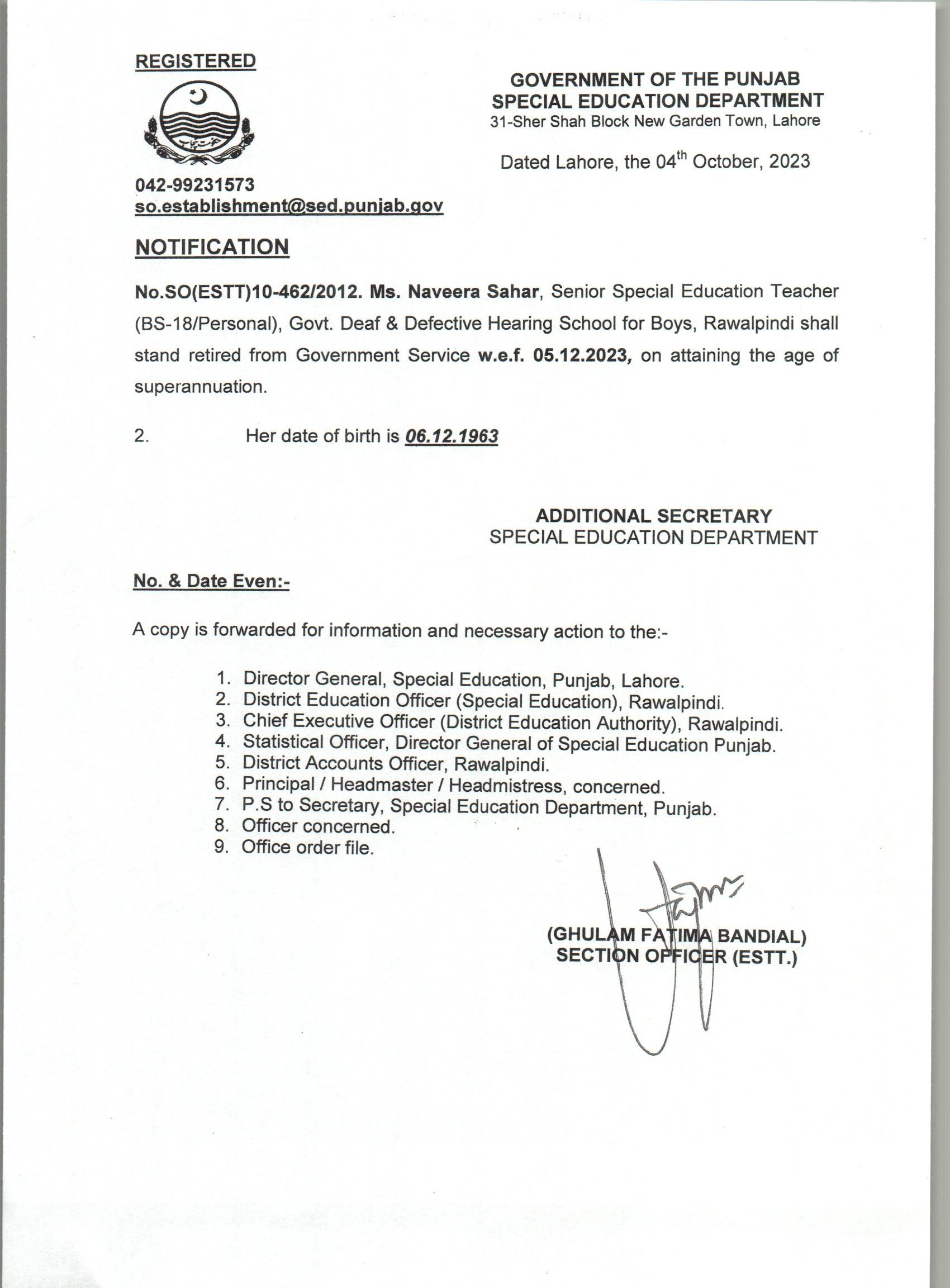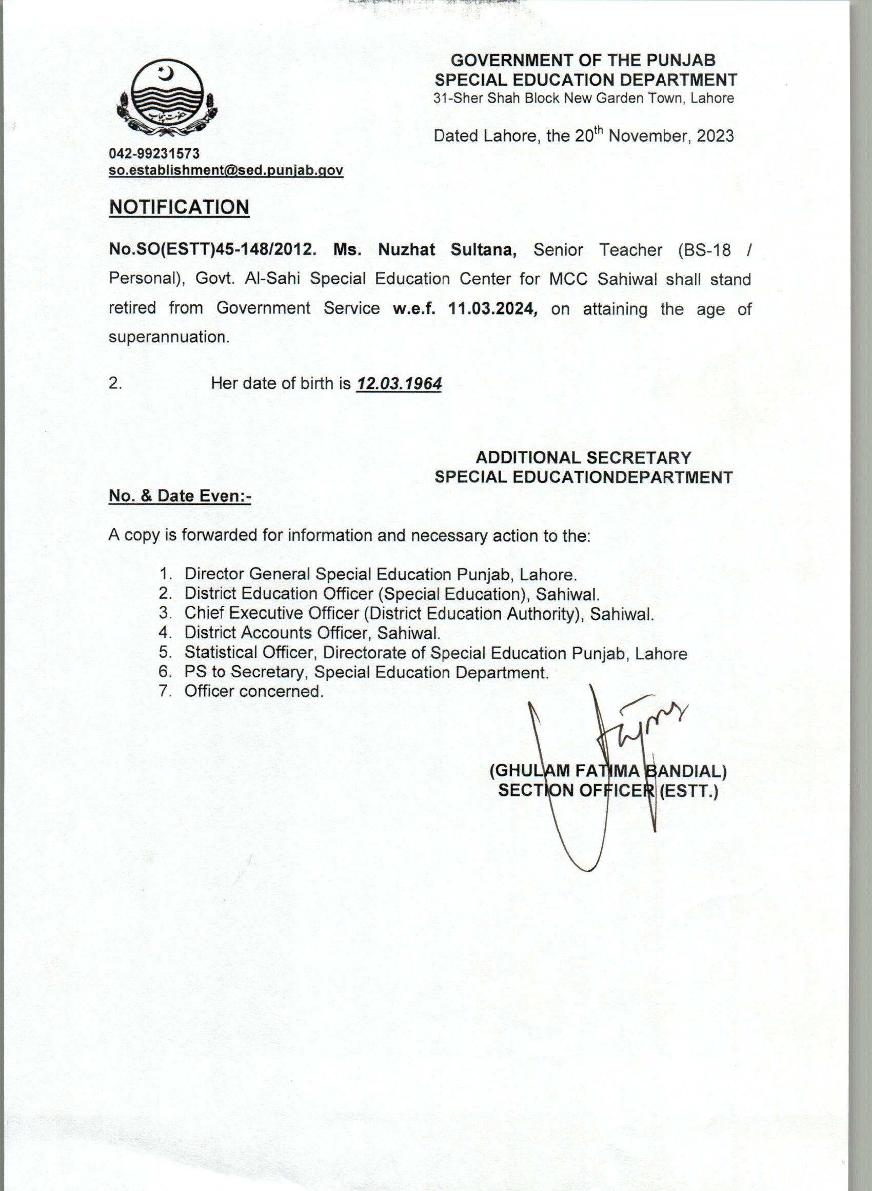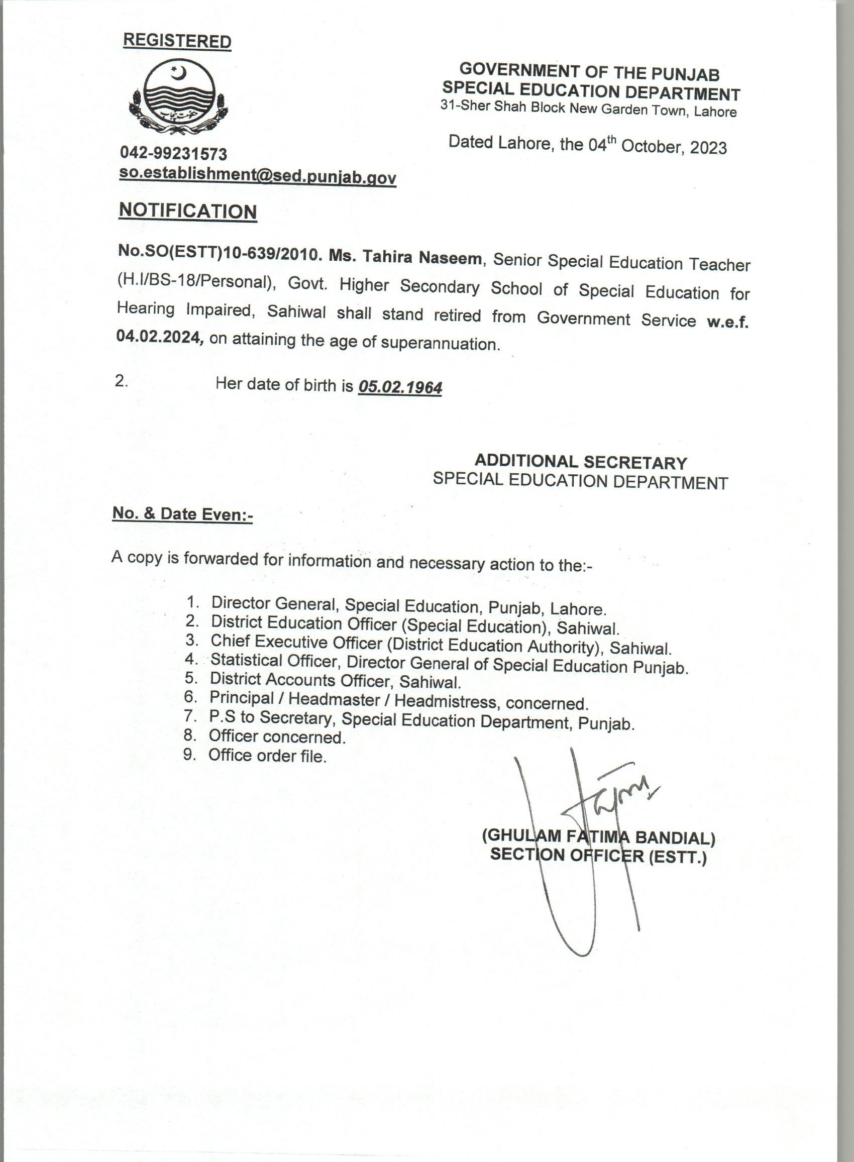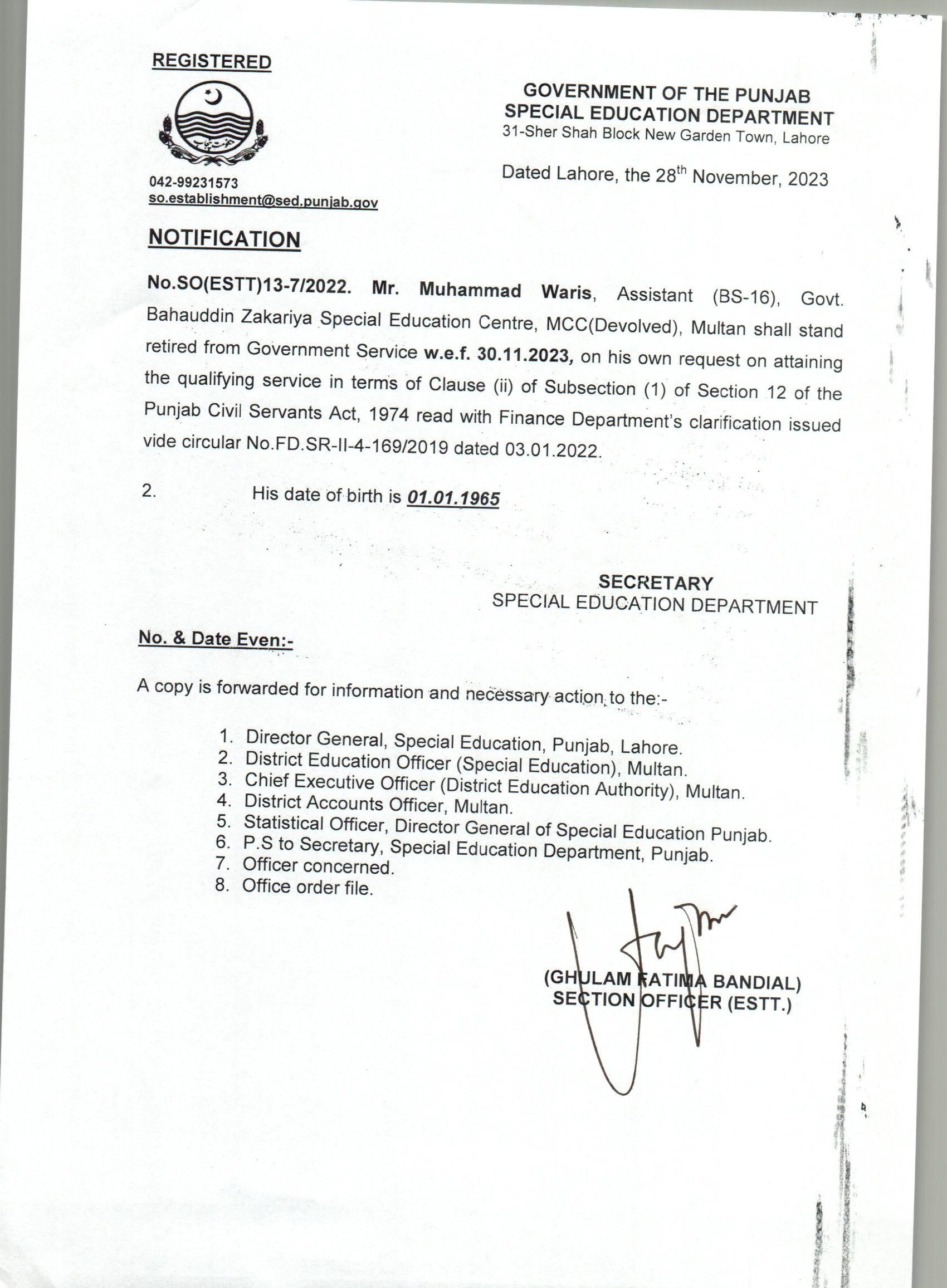 Retirement Notification |