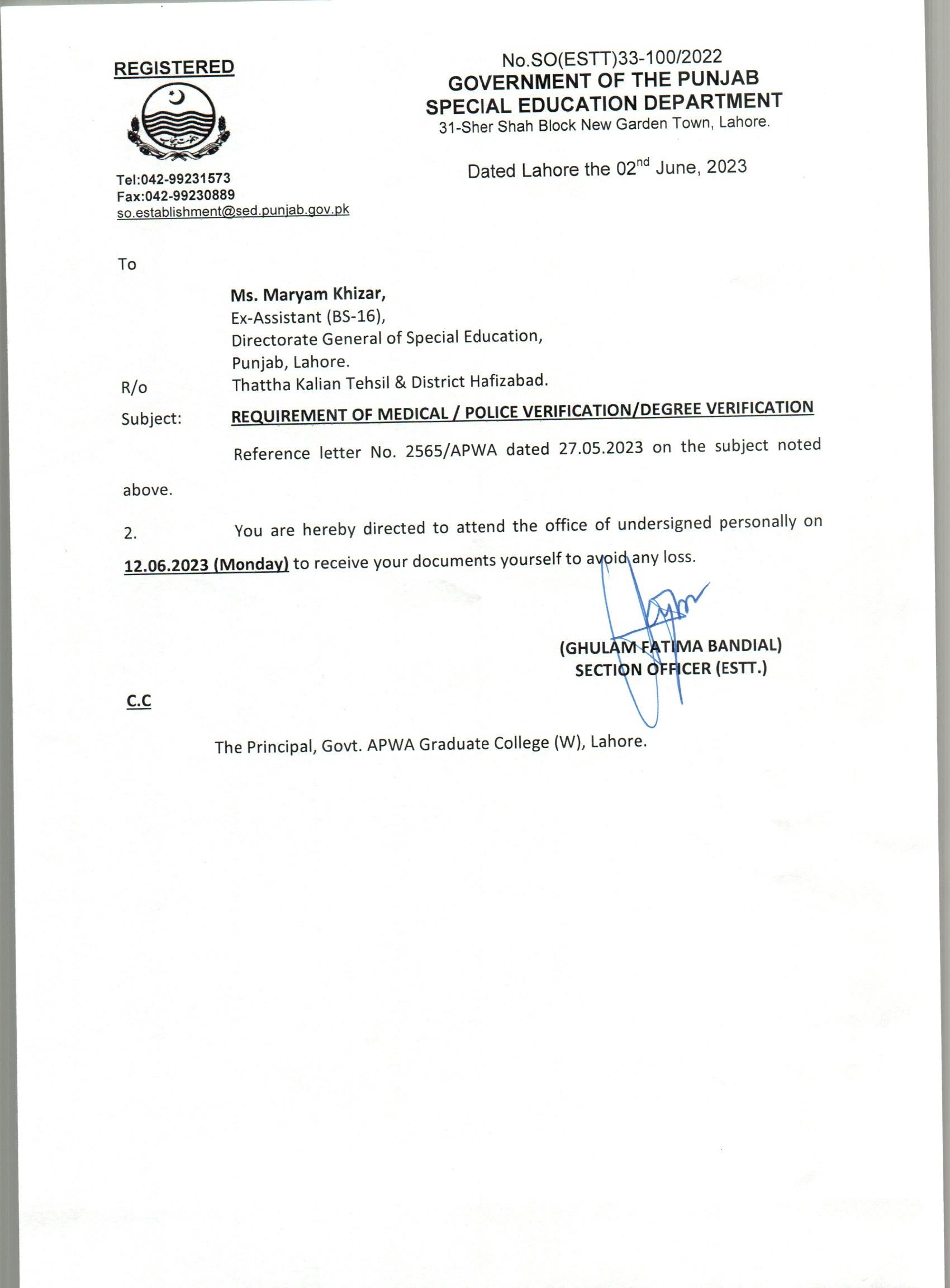Reply (Request for Provide Original Verified Educational Documents) |