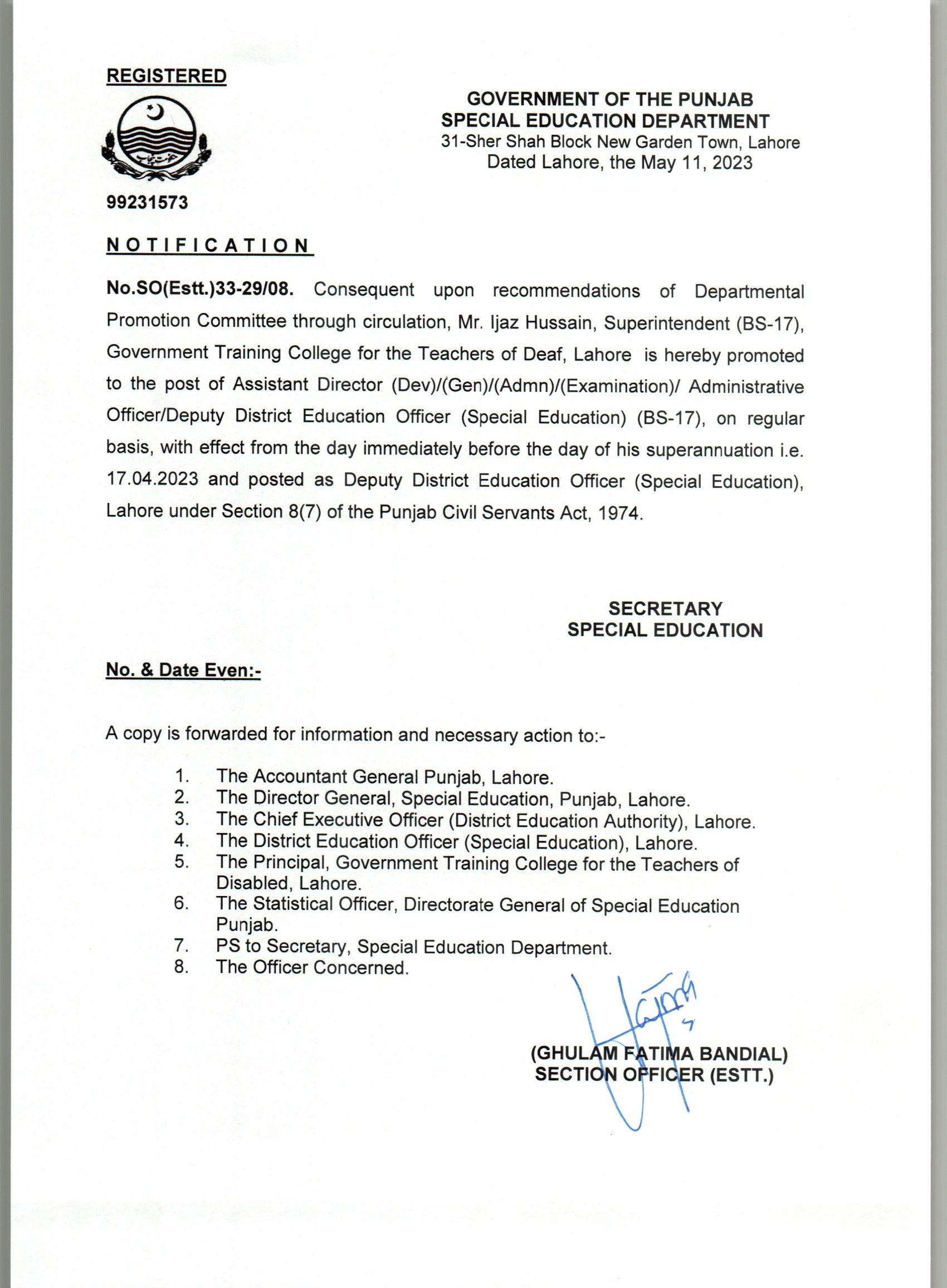 Reply (Request for Promotion as Headmaster w.e.f. 16.07.2002) |