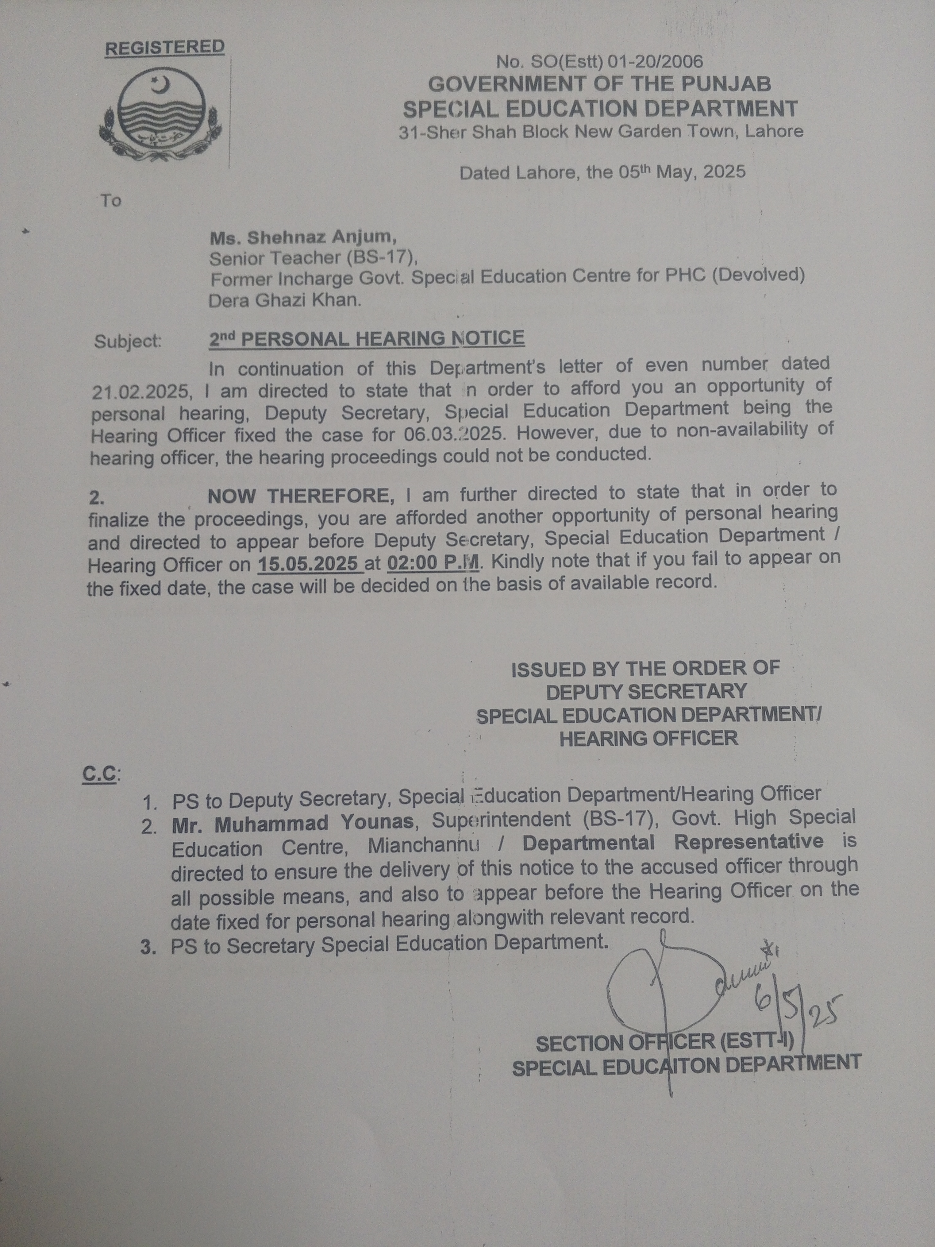 2nd Personal Hearing Notice |