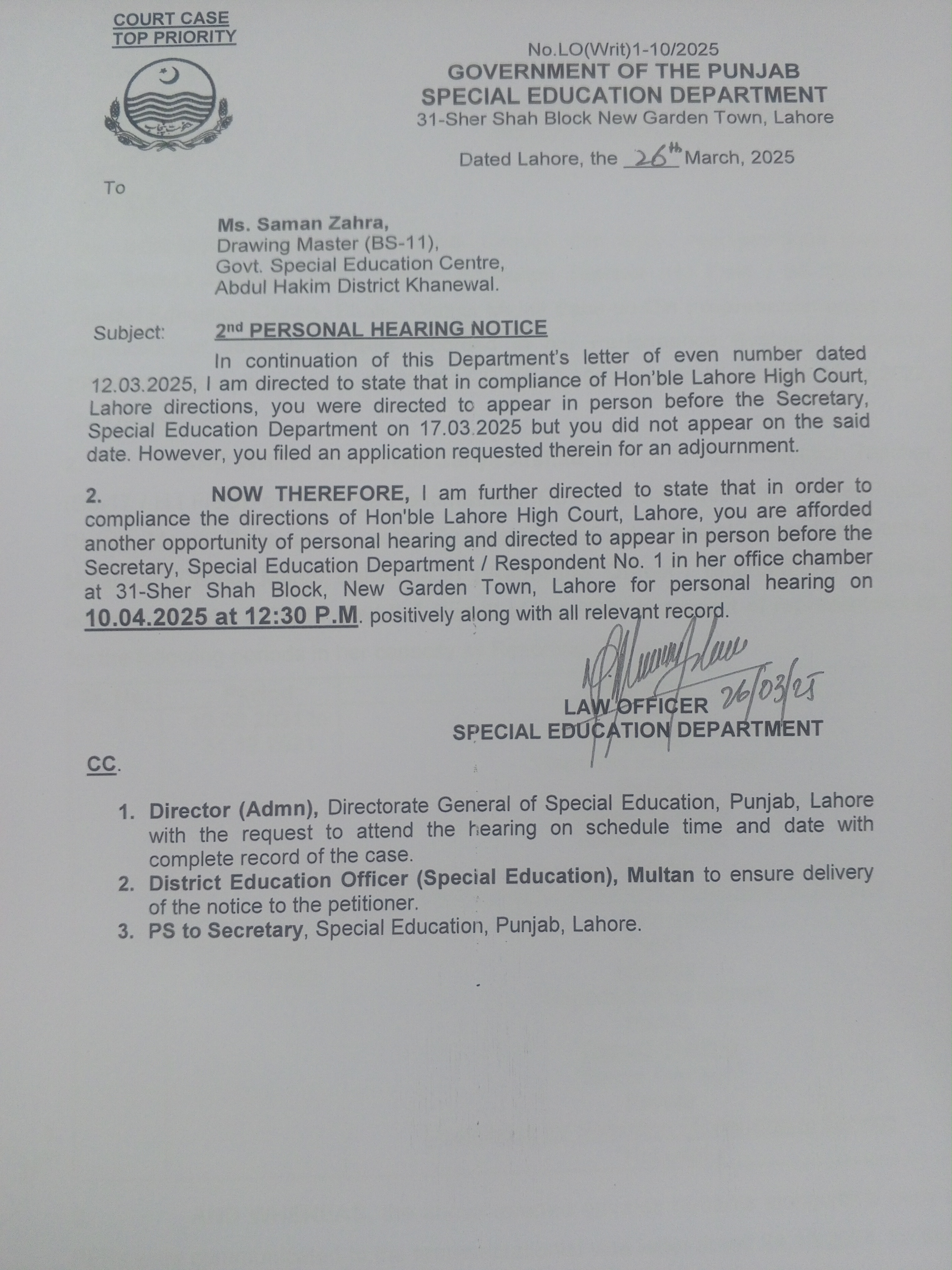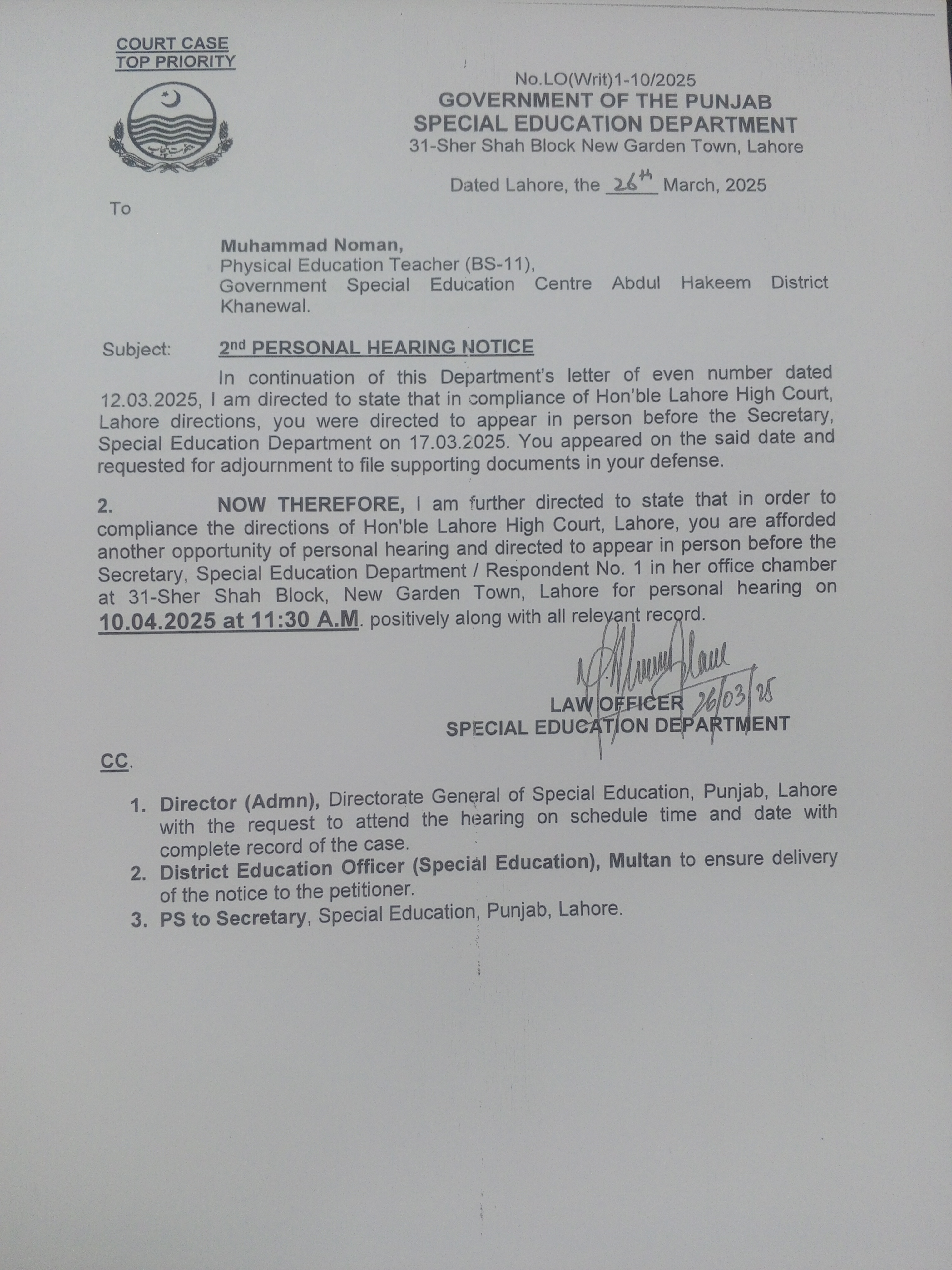 2nd Personal Hearing Notice |