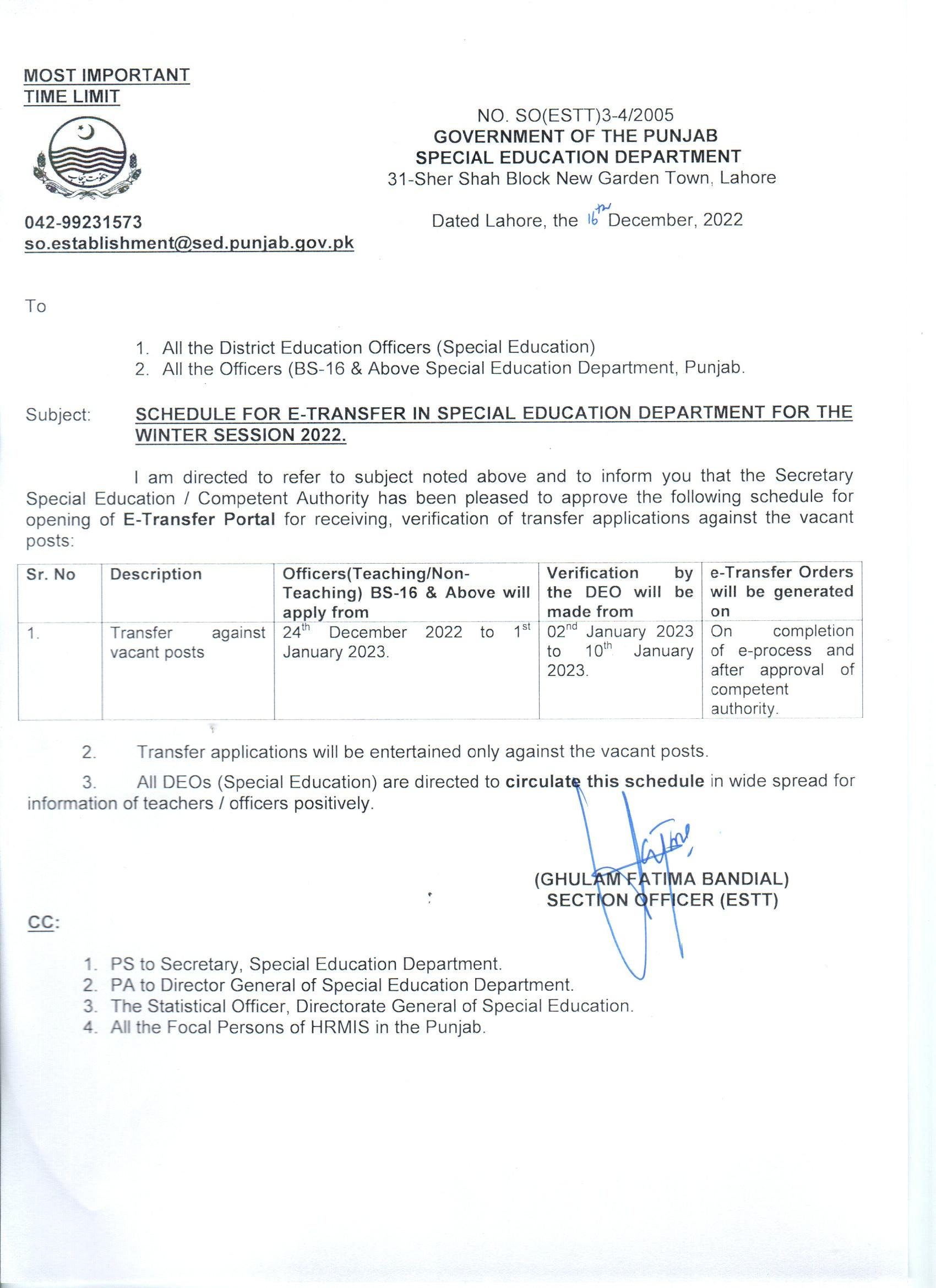 Schedule For E-Transfer (Summer Session Round-II 2025) |