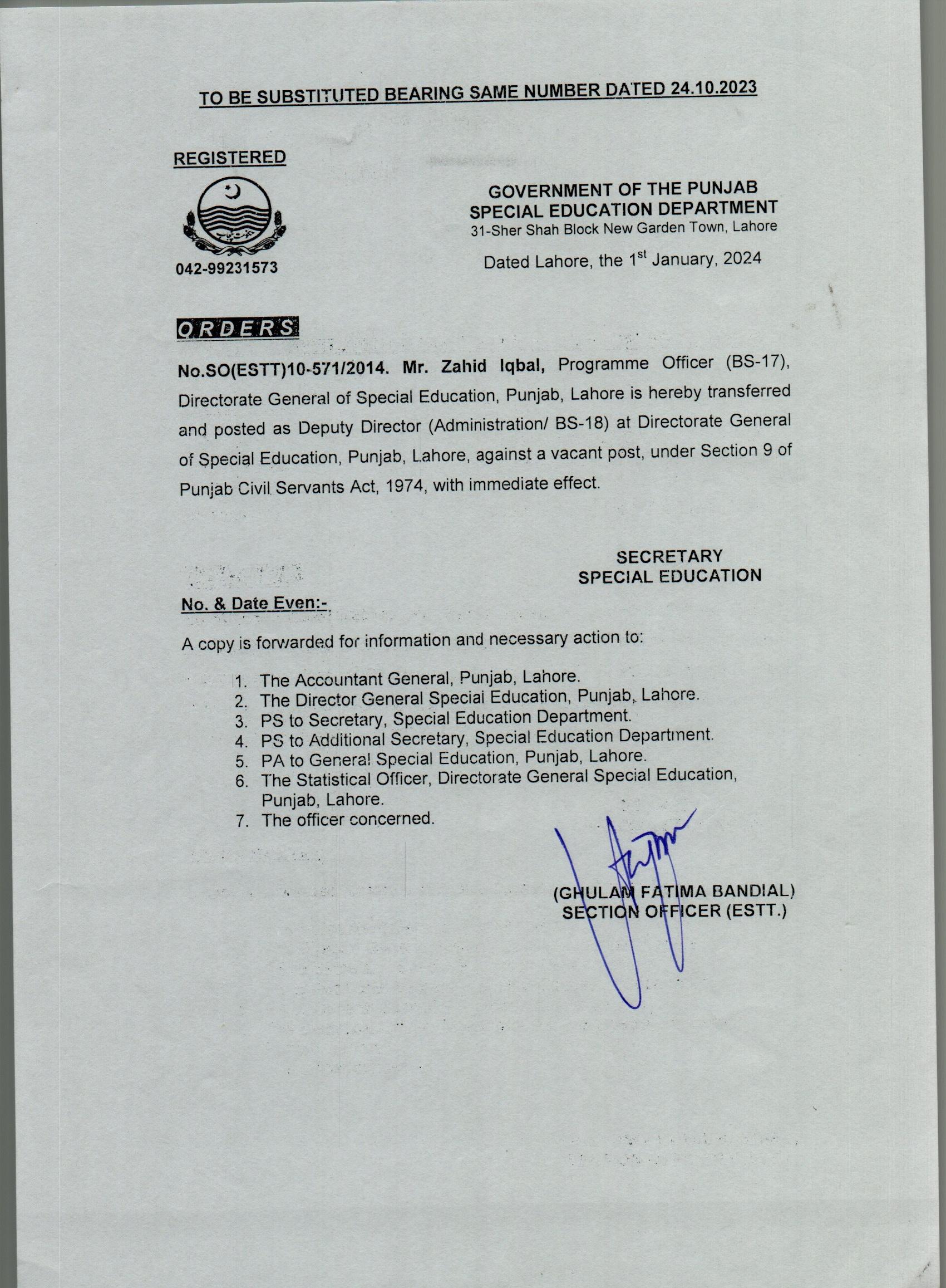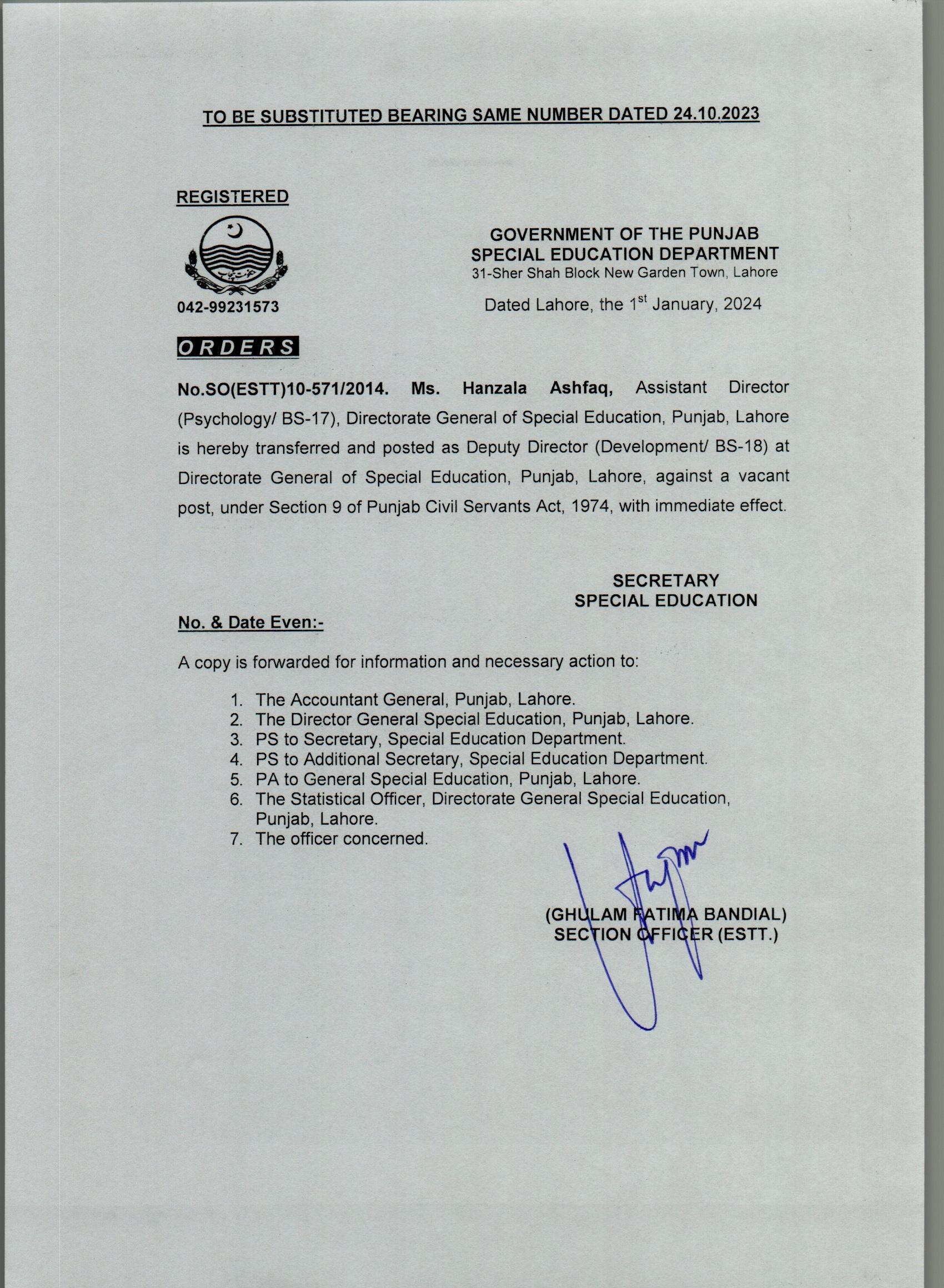 Transfer / Posting (Substituted) |