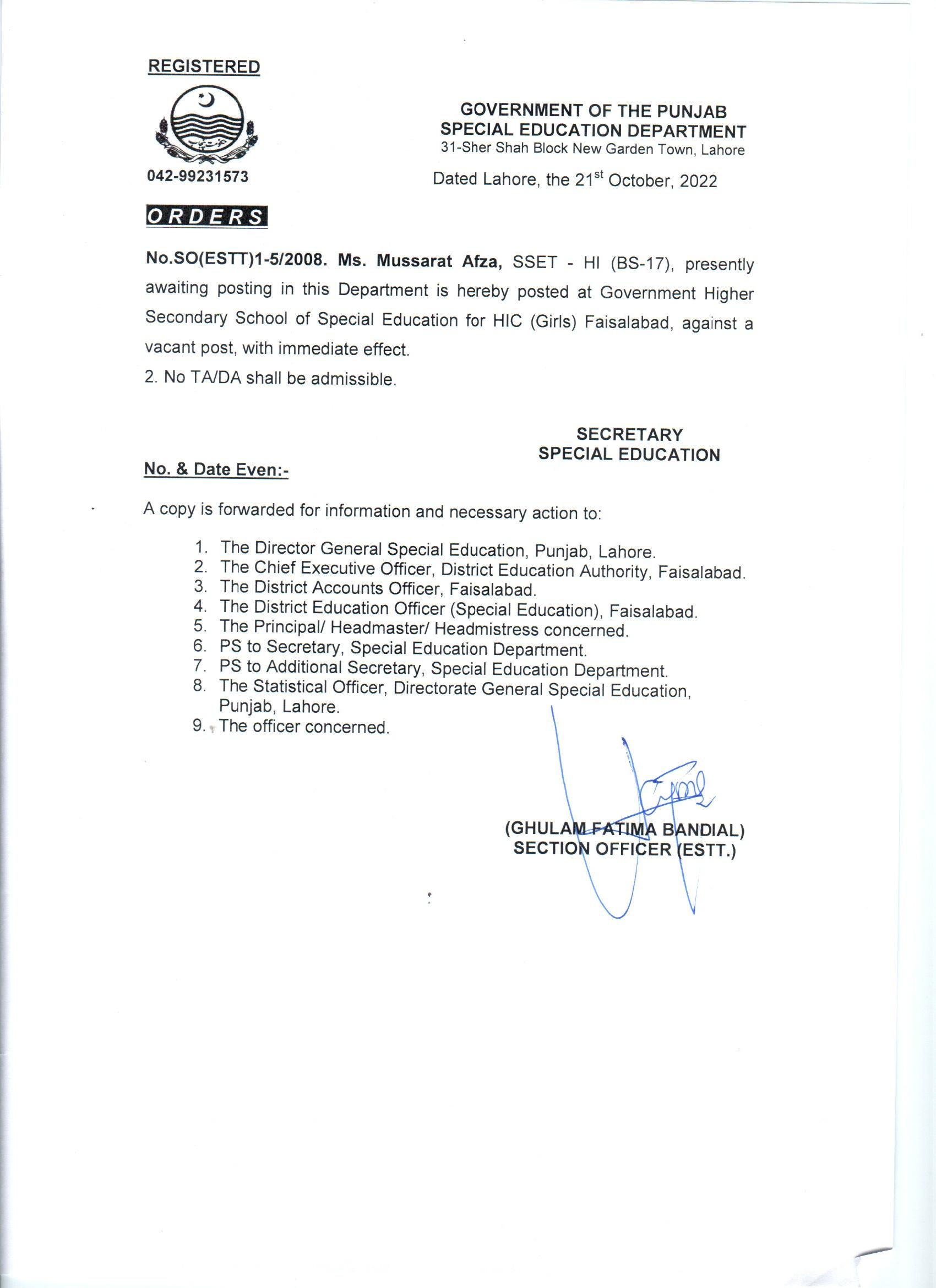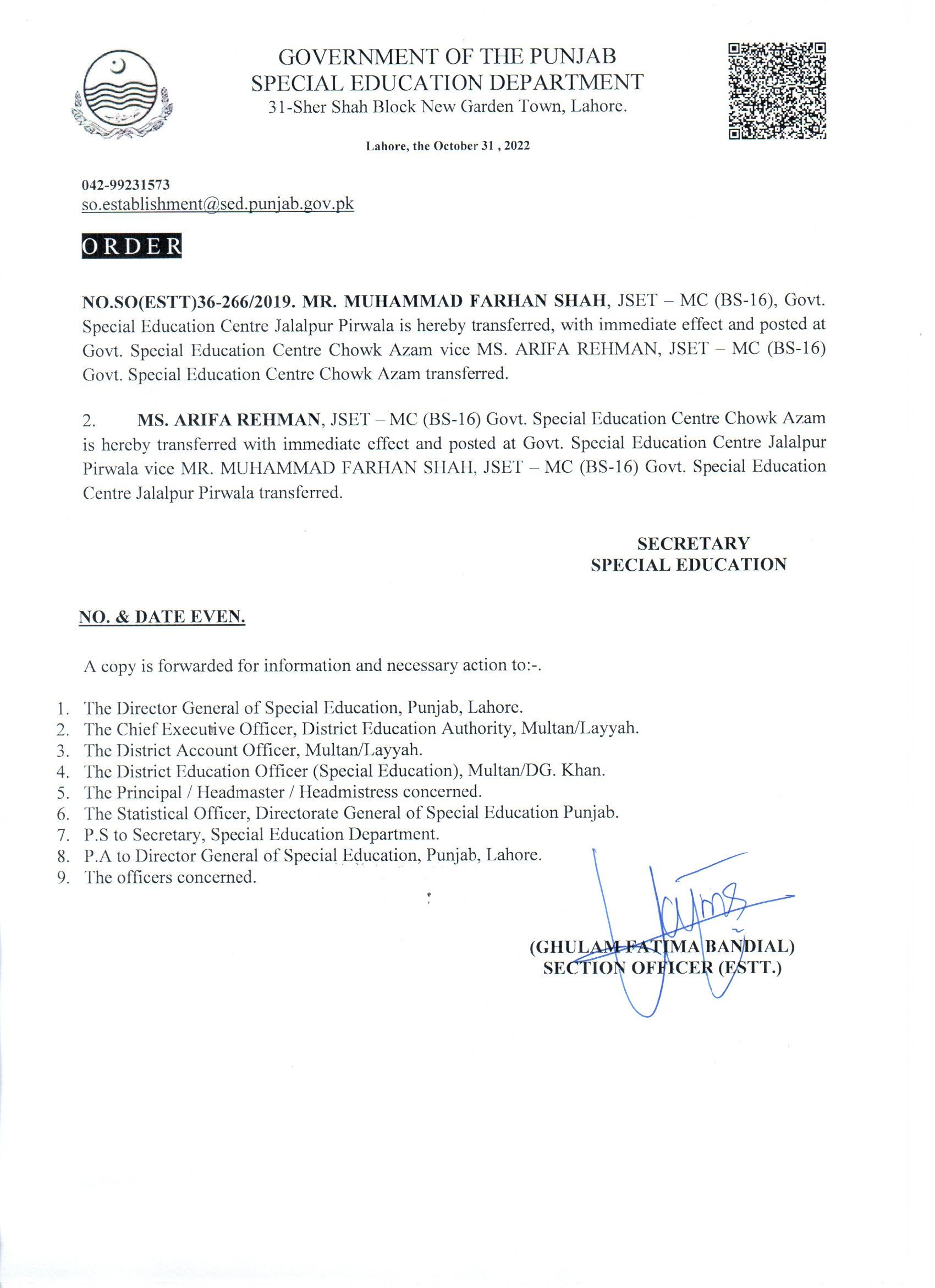 Mutual Transfer Order |