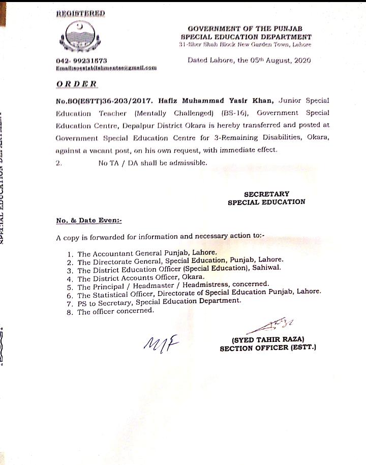 | SO(ESTT.)36-203/2017 | Transfer / Posting | Hafiz Muhammad Yasir Khan | /system/files/WhatsApp%20Image%202020-08-07%20at%2011.47.45%20AM.jpeg | |